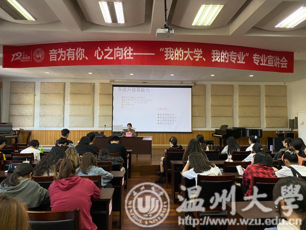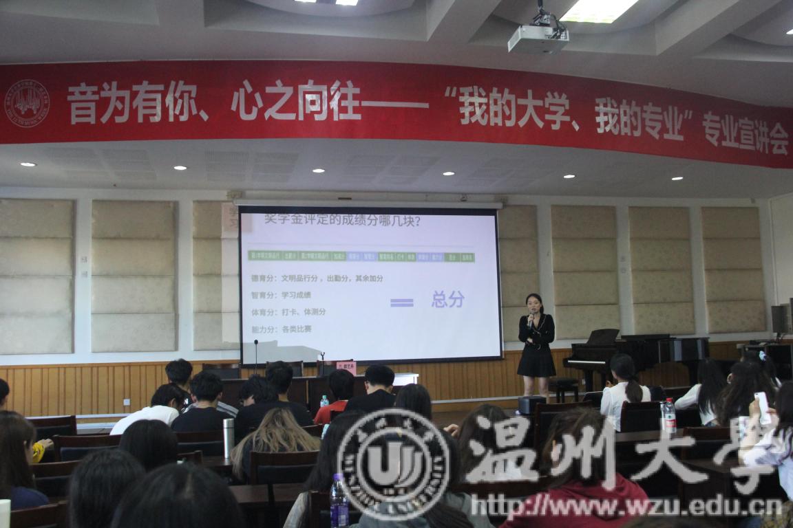 音乐楼201学术报告厅顺利举行了《音为有你,心之向往---“我的大学、我的专业”专业宣讲会》。优秀学生代表汪芯如、郭艺卉、王乐乐、同学出席了会议,全体20级学生以及其他专业的学生积极认真参加了宣讲会。