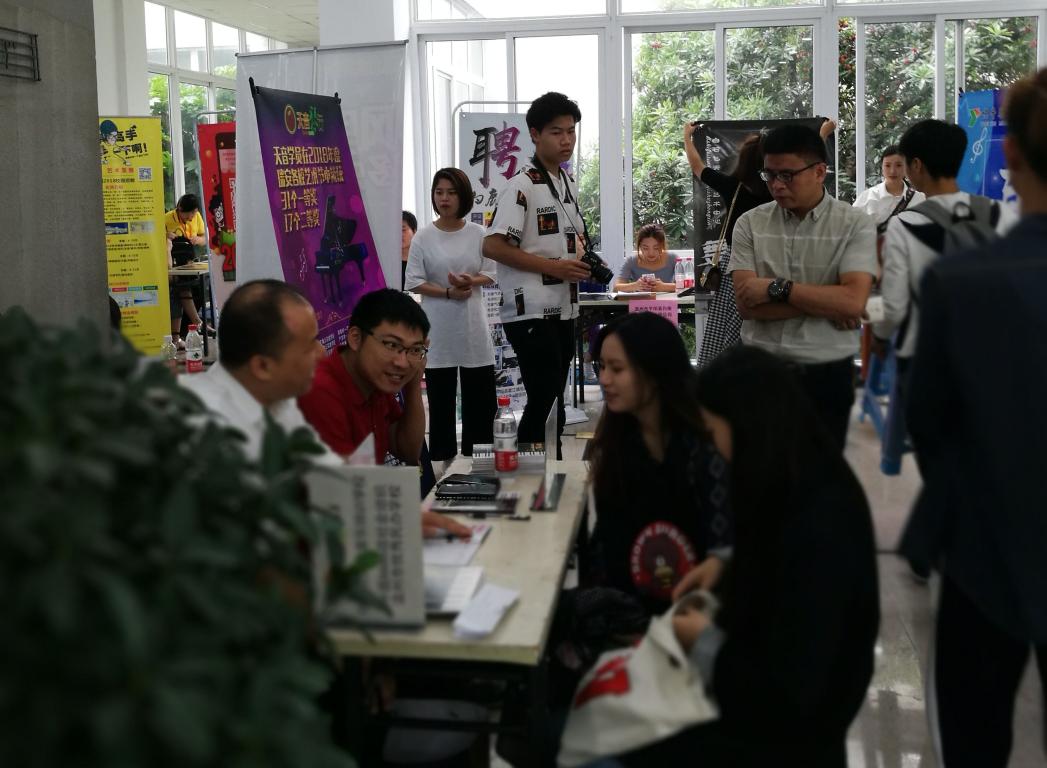 一楼大厅举行。彩虹艺校、浙江棒棒堂教育科技有限公司、多乐米音乐学校 、温州鹿城区小猫咪琴行、温州市超强教育文化艺术小镇等几十家用人单位、校友企业参加了本次的招聘会。JJGirls