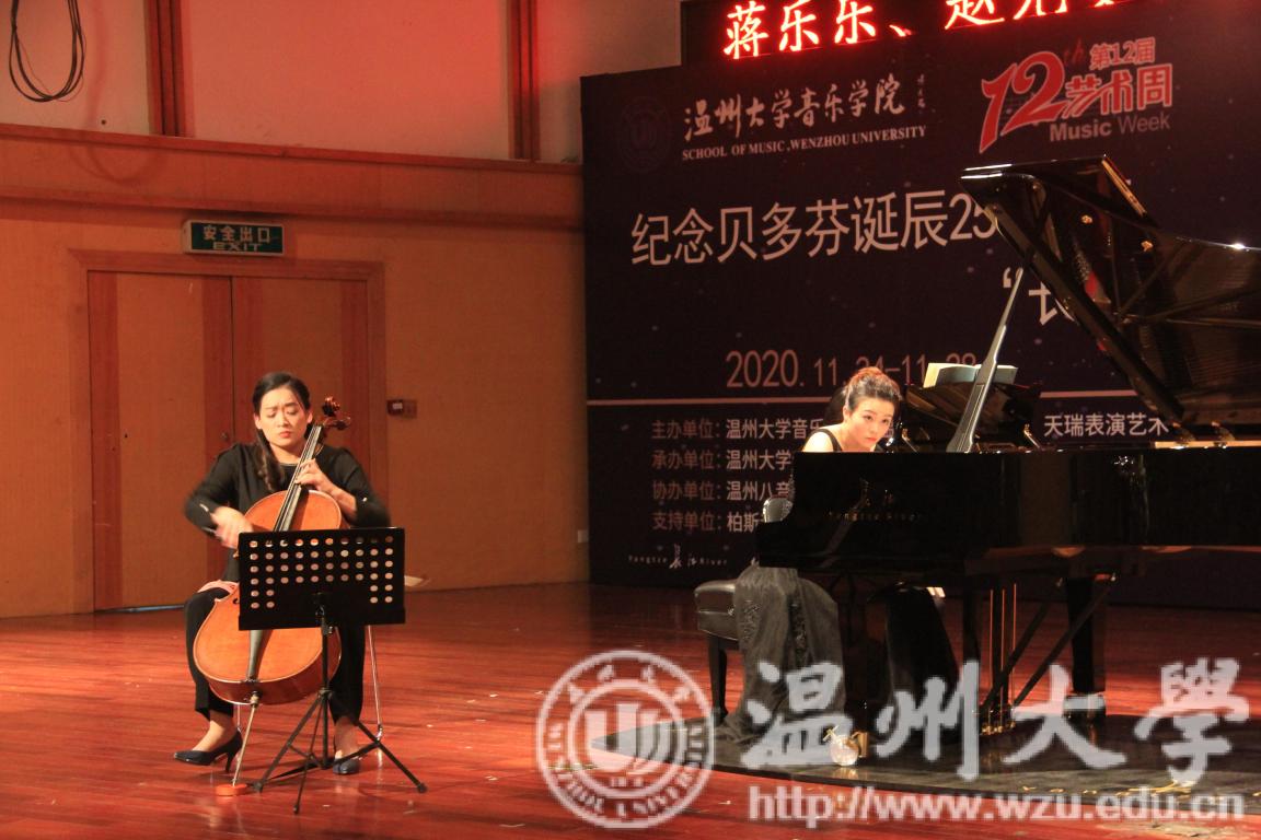 第二首《贝多芬C大调第四大提琴奏鸣曲,op.102,No.1》由陈露雯博士和赵光雯博士给大家带来演奏。本曲由两个乐章组成,贝多芬自己叫做自由的奏鸣曲式,被称为晚期开端曲。“晚期”有两层含义,一方面是超越所处的时代,以大胆惊人的创新走在时代前面;另一方面是呈现一种回归与回望,回到被历史前进脚步所遗忘的境遇。用自由奔放的曲式,充分发挥了大提琴独特的艺术感染力,营造了精彩动人的意境。第一乐章以行板开始,后变成活泼的快板。第二乐章九小节长的引子过后,乐曲短暂的回顾了第一乐章行板的旋律,后面的快板是一首短小精悍的奏鸣曲式。