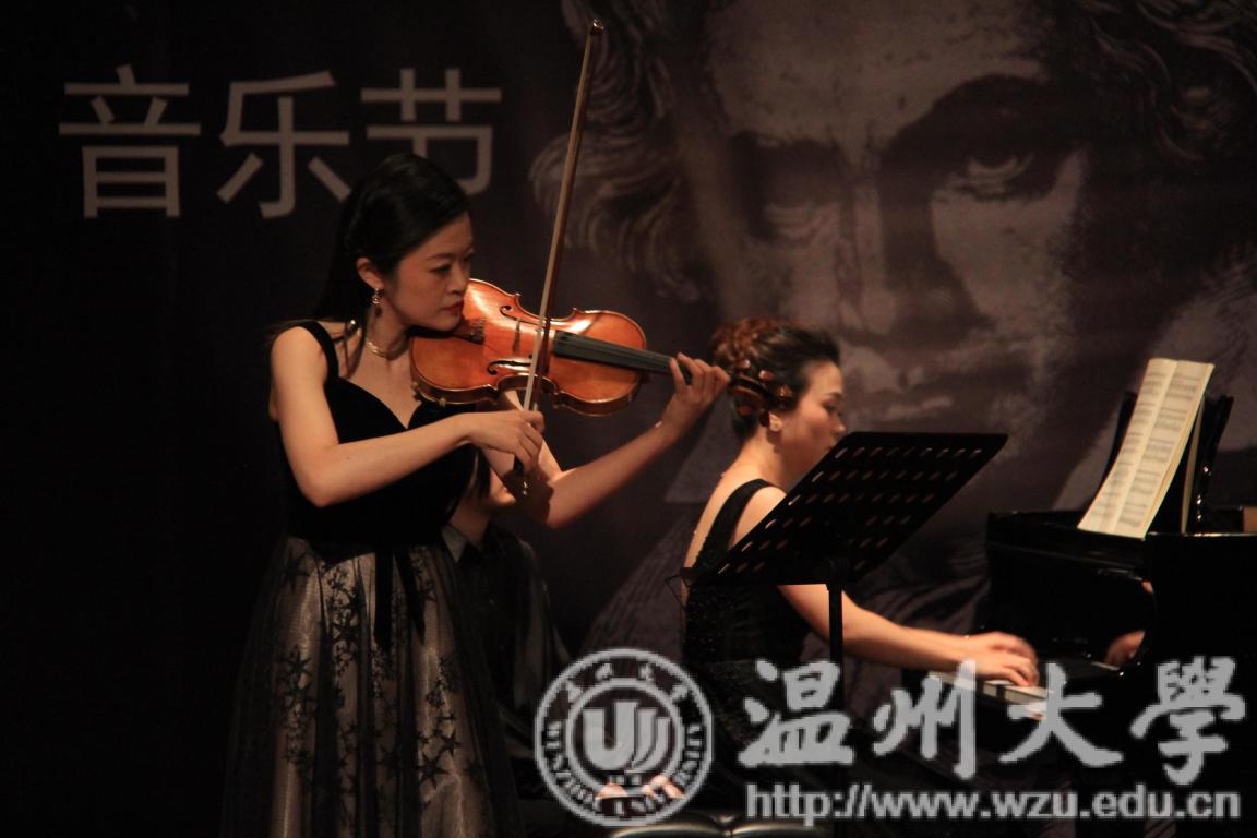 陈露雯博士,蒋乐乐博士和赵光雯博士一同演出。第一首由陈露雯博士和蒋乐乐博士演奏的《贝多芬a小调第四小提琴奏鸣曲,op.23》拉开了帷幕。这是一首贝多芬早期创作的二重奏曲目,典型的古典奏鸣曲快-慢-快三个乐章。听众能感受其强劲的艺术创造力和极为丰富的内心之声,让人久久不能平静。