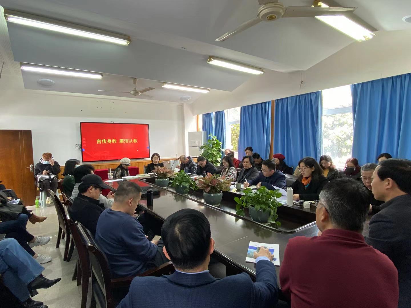 会上,蔡晓武副书记就“言传身教、廉洁从教”展开讲话,要求我院每位教师都做到“树廉洁之心,行廉洁之事,做廉洁之人,恪守职业道德,坚守高尚情操,发扬奉献精神,自觉抵制社会不良风气影响。”