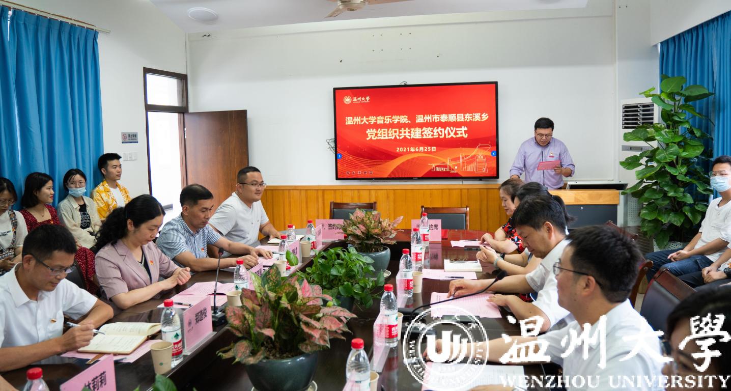 与温州市泰顺县东溪乡在我校音乐楼203会议室举行党组织共建签约仪式。校党委副书记庄兴忠、JJGirls