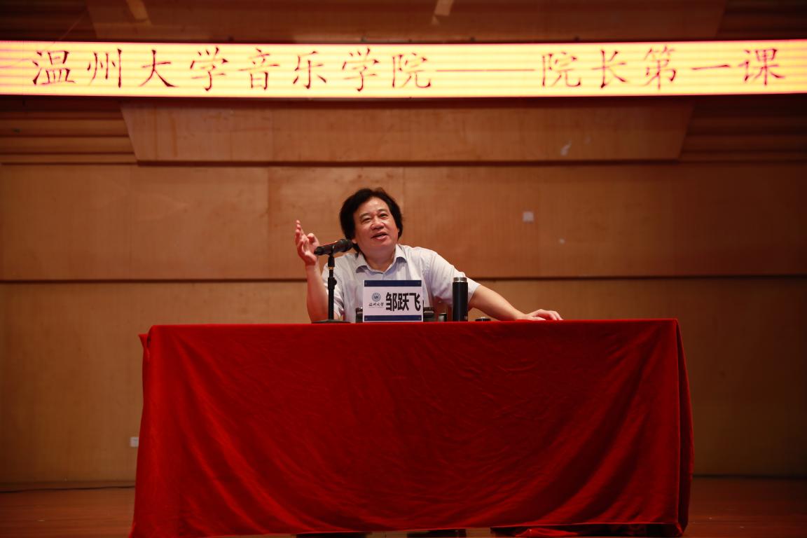 2021级院长第一课于天瑞音乐厅隆重召开。邹跃飞院长为2021级全体本科新生做“敬畏讲台,敬畏舞台,砥砺前行,不负韶华”主题的讲座。