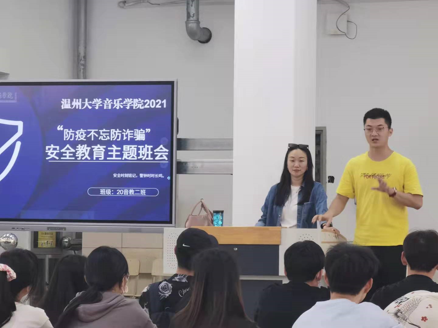 由于现阶段疫情仍不可放松,19音研班级以一种与大家完全不同的形式开展了他们的班会,他们开展了线上的安全教育主题班会。线上的安全教育与线下不同,也许学生们盯着电脑屏幕会更加专注得听老师讲述这安全教育的重要性,就因为安全是任何人都得关注的事情,所以要反复强调,这样才能够深深得刻进我们的脑海之中!