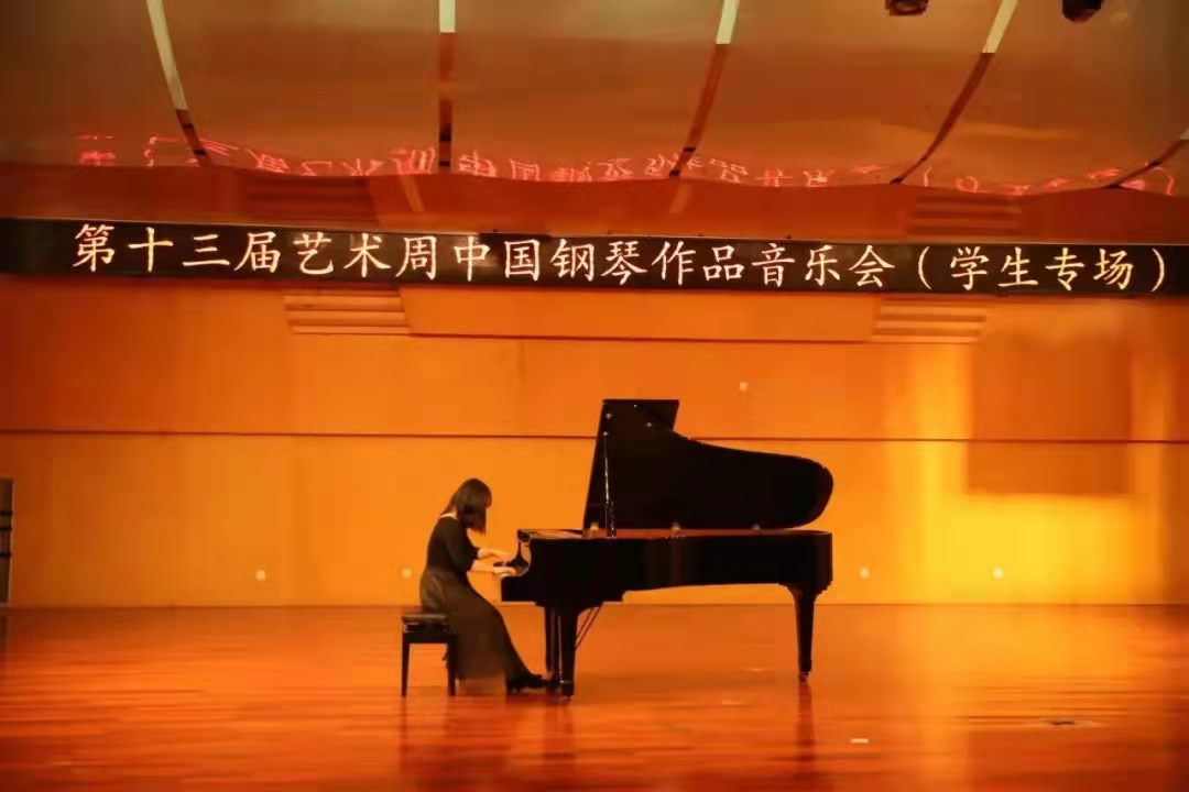 于天瑞音乐厅举办第十三届艺术周中国钢琴作品音乐会。参加本次音乐会演出的同学有21音研王鸯鸯、19音教3班郭酉香、20音教1班的谢多佳、王烁等同学。