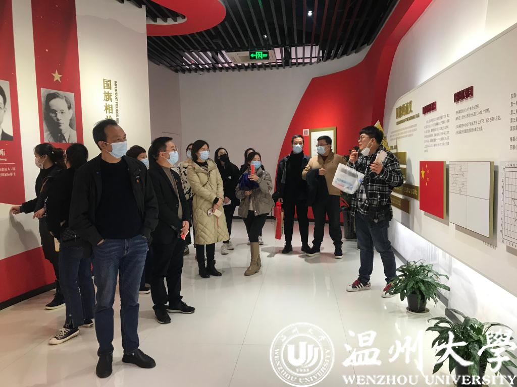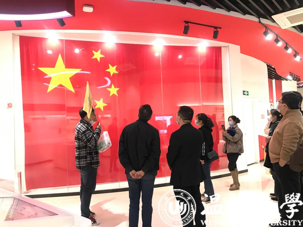 师生党员在学院党委书记朱启鑫的带领下,驱车前往瑞安市国旗教育馆,传承红色初心,弘扬党史文化。