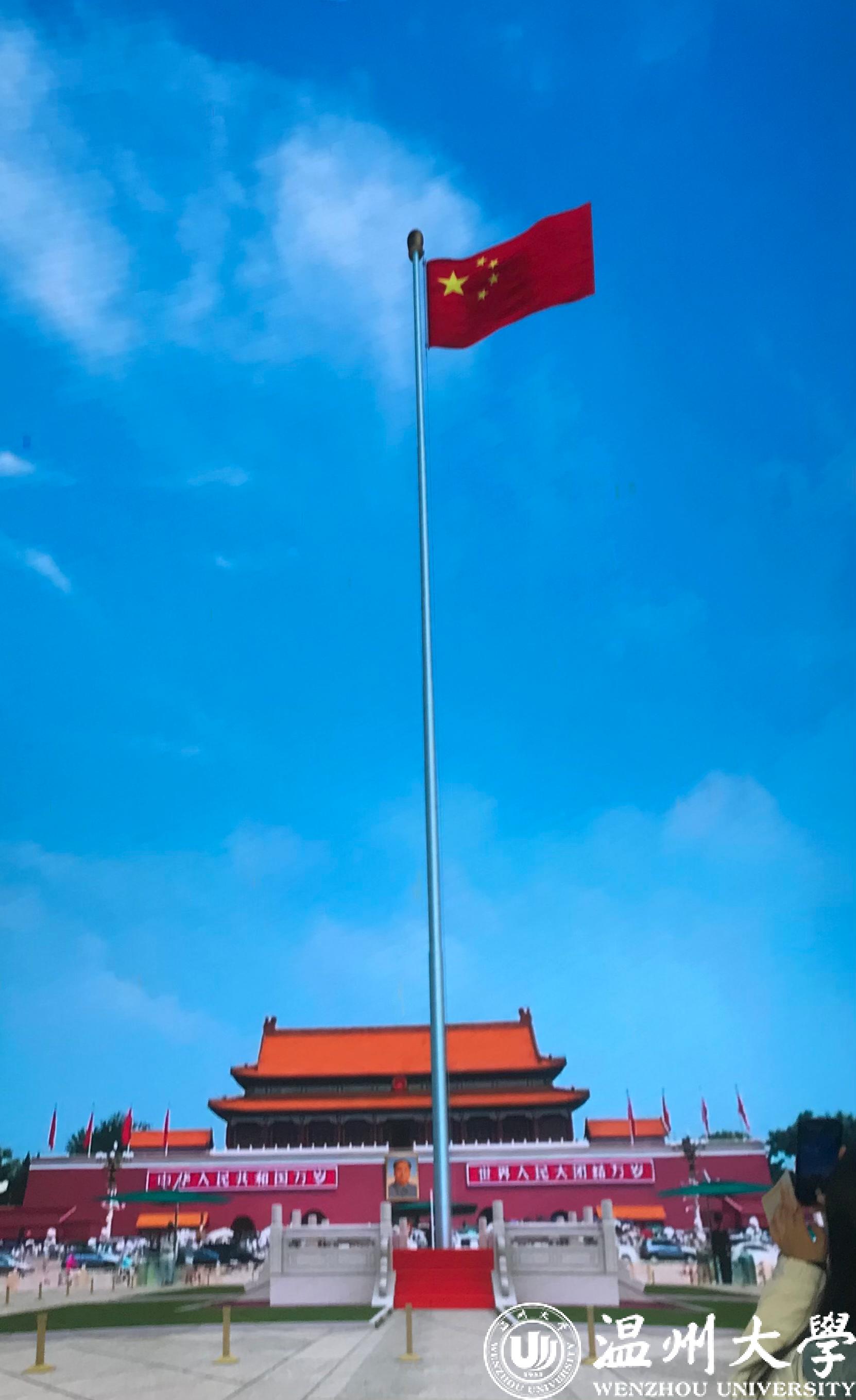 国旗教育馆位于瑞安西山,初观国旗教育馆,其外形就是一面巨大的国旗的立体形状,气势逼人。踏入馆内,首先映入眼帘的是一巨幅高约19米的升旗大屏幕。伴随着国歌声,党员们不约而同列好队在国旗前庄严地行注目礼,浸润式体验了天安门广场庄严肃穆的升旗仪式。