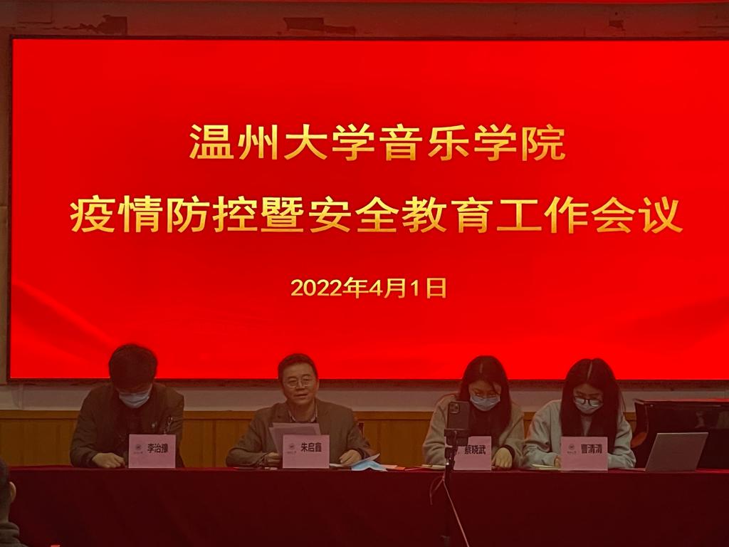 组织召开疫情防控暨安全教育工作会议。音乐学院党委书记朱启鑫,党委副书记蔡晓武,辅导员曹清清、李治豫老师,全体音乐本研学生及班主任通过线上线下相结合的方式参加会议。本次会议由院党委副书记蔡晓武老师主持。
