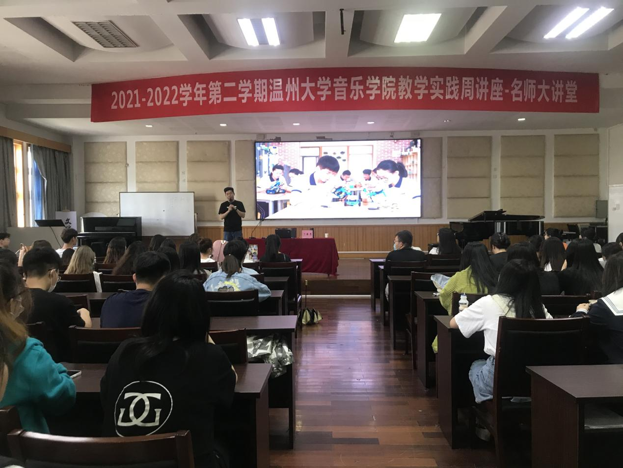 林杰老师为温州市绣山中学音乐教师、鹿城区教坛新秀、浙江省中小学生艺术节优秀指导老师,同时林老师也是20音乐学(师范)学生名师大讲堂的授课教师。参加本次讲座的是20音乐学(师范)全体学生。