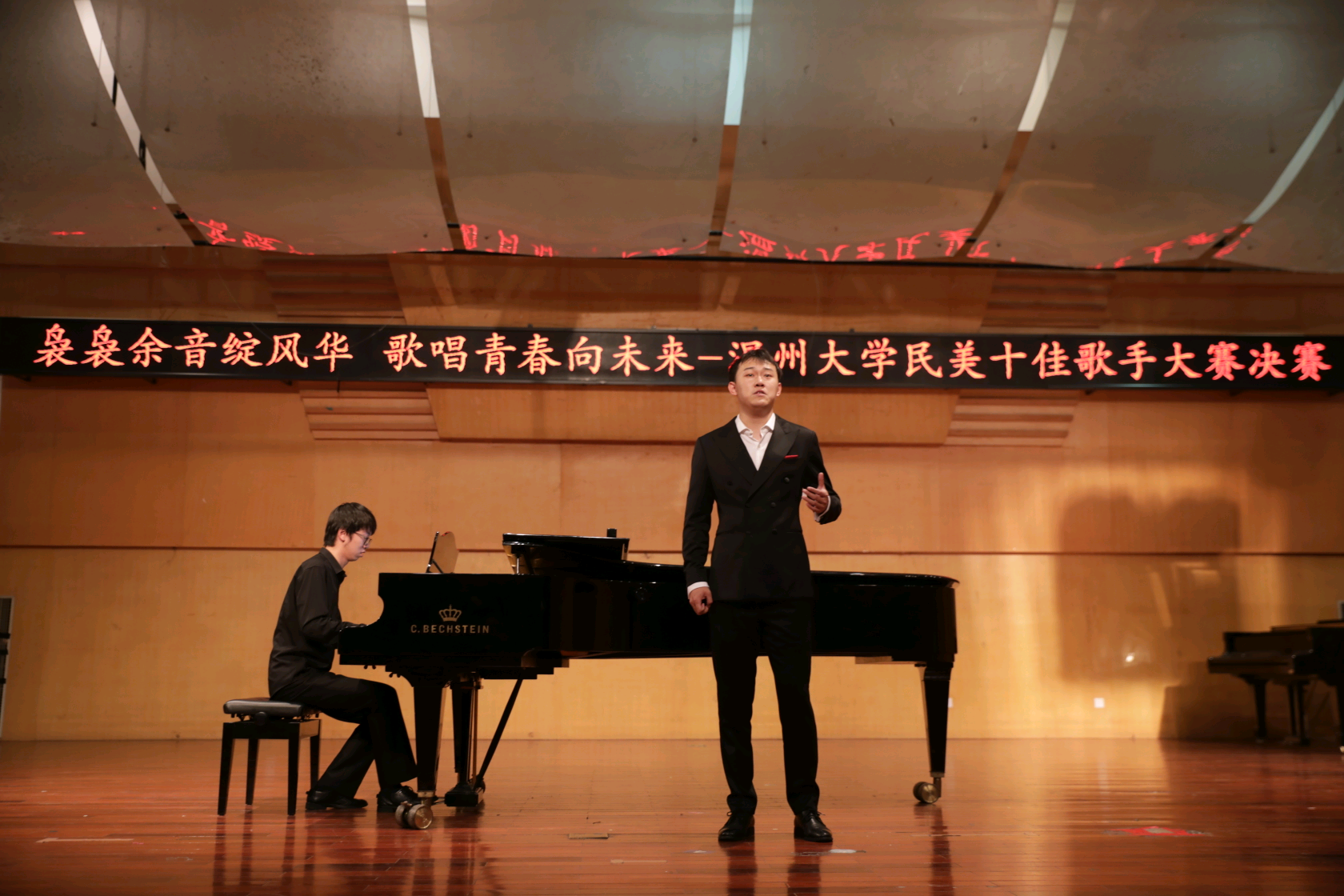 天瑞音乐厅举行。本次比赛共分为研究生组、民族组、美声组三个组别,经过一轮激烈的初赛,共有三十位参赛者晋级决赛。声乐系主任李晓燕教授,李成柱教授,易雄志老师,陈娴老师、季方庭老师担任本次大赛评委。