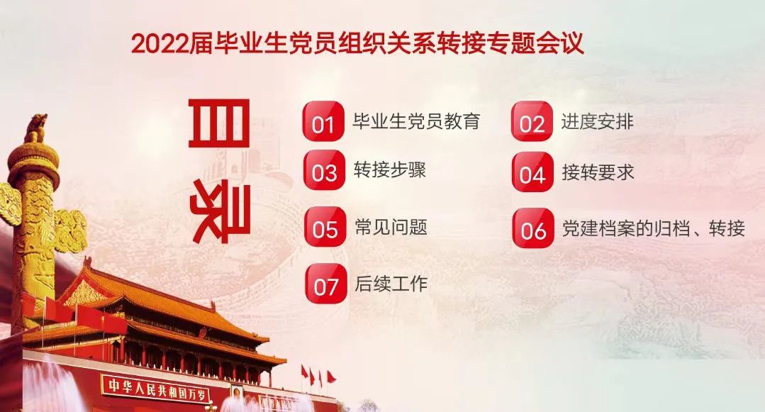 会上,曹清清老师对党员组织关系转接工作做了重点部署,特别是在进度安排、转接步骤、转接要求和党建档案的归档转接等方面进行着重强调与提醒,要求毕业生党员必须要提高认识、严格落实、完整转接,按期完成组织关系转接工作。