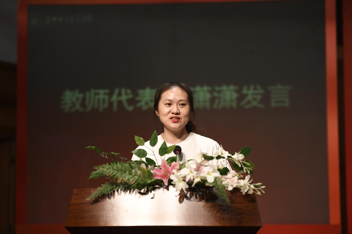 随后教师代表张潇潇作为毕业班主任深情发言,言语中一度哽咽“我觉得你们懵懵懂懂走进大学校园,满眼皆是期待的样子似乎就在昨天,一转眼你们已经穿上了学士服即将奔向属于自己的诗和远方,我希望我们的告别也一定是带着微笑而不是眼泪。祝同学们在以后的人生中‘乘风破浪,好事发生’!”