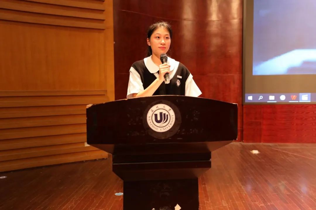 紧接着是优秀学生代表刘璐茜结合自身与新生分享生活经验及学习技巧,并对刚进入大学的22级新生提出建议:制定学习目标,学会挖掘兴趣,积极参加学院活动及学生工作,学会自律。与此同时,2022级本科生代表颜丽然代表新生展望未来大学生活,她表示要脚踏实地,夯实基础,明确学习目标。
