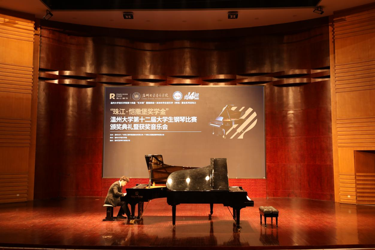第十二届大学生钢琴比赛颁奖典礼暨获奖选手音乐会在南校音乐厅举行。珠江钢琴集团公司代表、温州艺家琴行有限公司总经理陈辛革先生,以及JJGirls
