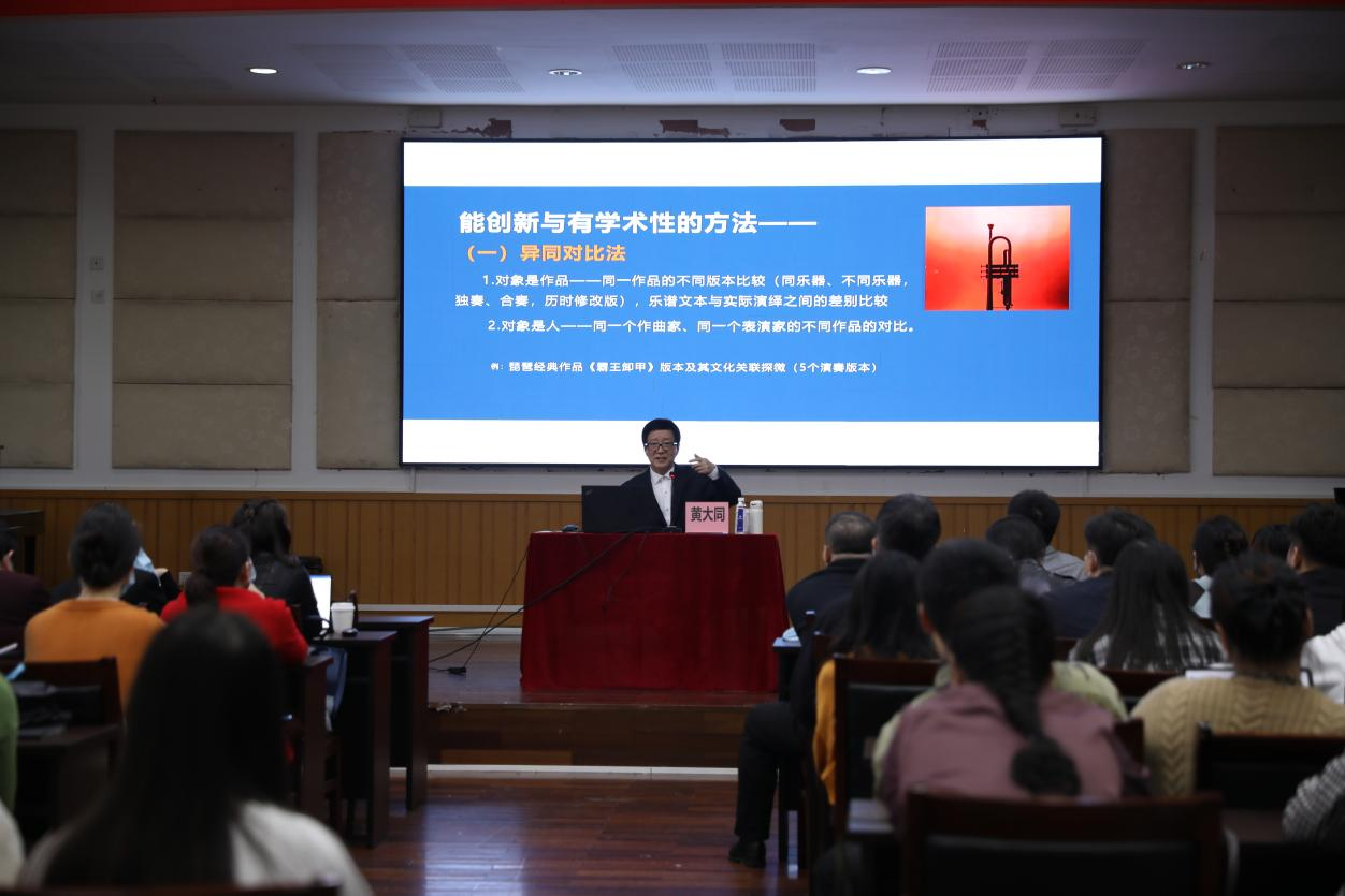 黄大同教授用有趣的言语和丰富的实例,就艺术课题的研究申报所遇到的种种困难,提供了许多简而易行、行之有效的方法。让在场的老师学生们受益匪浅,是一场别开生面且难忘的讲座。