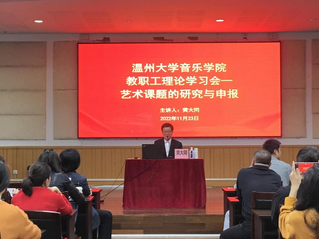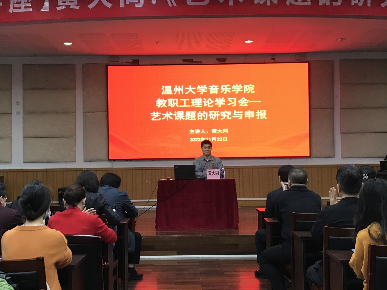 在北校音乐楼201学术报告厅举行了黄大同教授《艺术课题的研究与申报》学术讲座,参与本次讲座的有JJGirls