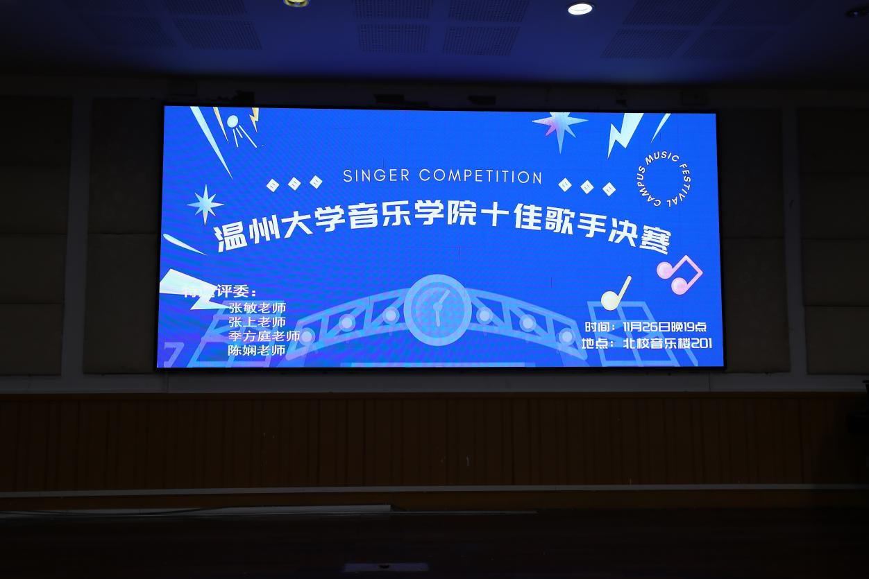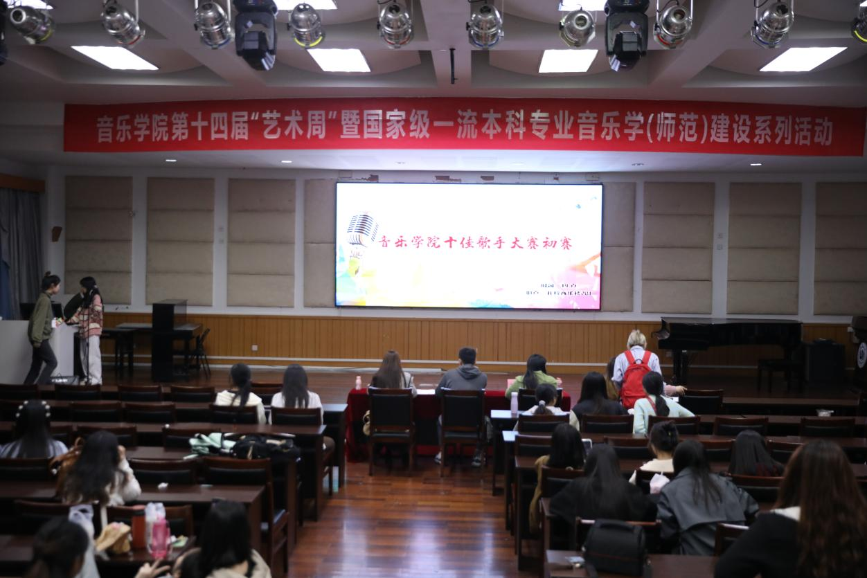 十佳歌手初赛在北校区音乐楼201成功举行。此次活动共邀请了黄立恒、贾吉旺和张舒畅三位老师作为此次十佳歌手初赛的评委。此次比赛共有53名学生站上了舞台进行同台竞争,歌声从这里传出,音符从这里飘扬,梦想也开始起航。本次十佳歌手充分满足了学生们在课外对音乐的喜爱与探索,选手们的精彩表演引得在场观众阵阵欢呼雀跃,全场气氛热烈至极。