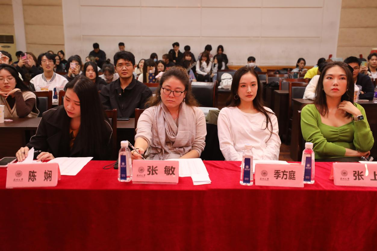 十佳歌手大赛决赛在音乐楼201教室举行。经过前几日初赛的激烈角逐,最终共有28人进入决赛。此次活动我院特意邀请了张敏老师,张上老师,季芳庭老师,陈娴老师作为评委出席。当晚,音乐楼201教室座无虚席,工作人员纷纷到位,选手已准备就绪,七点比赛准时开始。