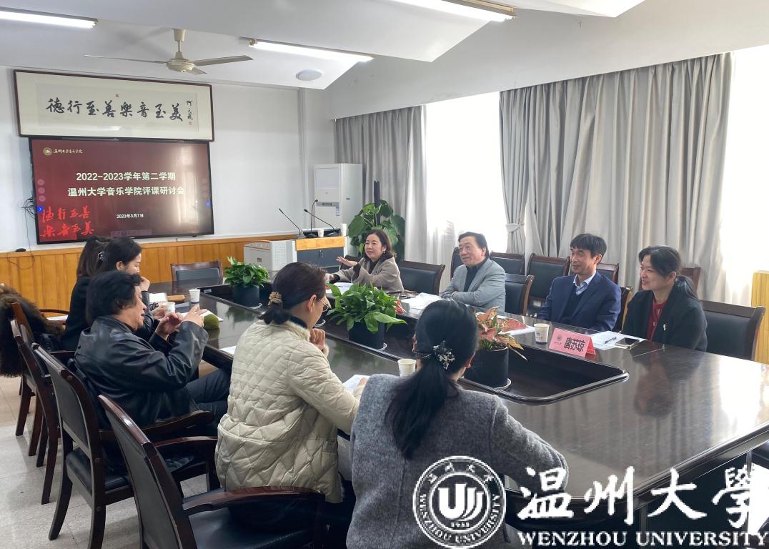 评课研讨会。首先,邹跃飞院长对校领导及各职能部门负责人对我院教学工作的关心与支持表示由衷的感谢。蔡军副院长对严老师的授课内容、授课形式、教学方法、思政元素等方面进行了详细的评价并给予了肯定。钢琴系副主任莫颖老师认为这种授课的形式,能够促进学生对音乐的理解,音乐理论系副主任吴春艳老师认为课堂中学生之间的相互评价,体现一种集体的参与性等。