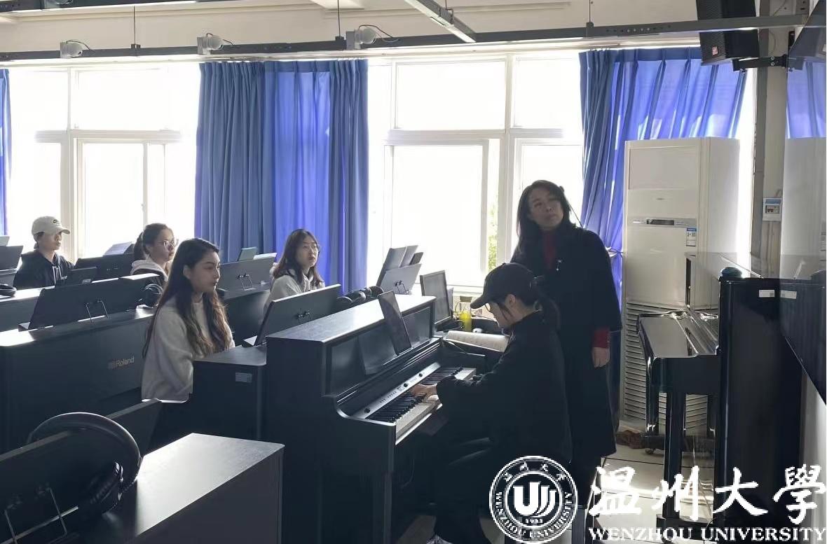 院长邹跃飞、副院长蔡军、音乐理论系副主任吴春艳、钢琴系副主任莫颖、学院教学科的陪同下,在北校区音乐楼401电钢琴教室全程听取了JJGirls