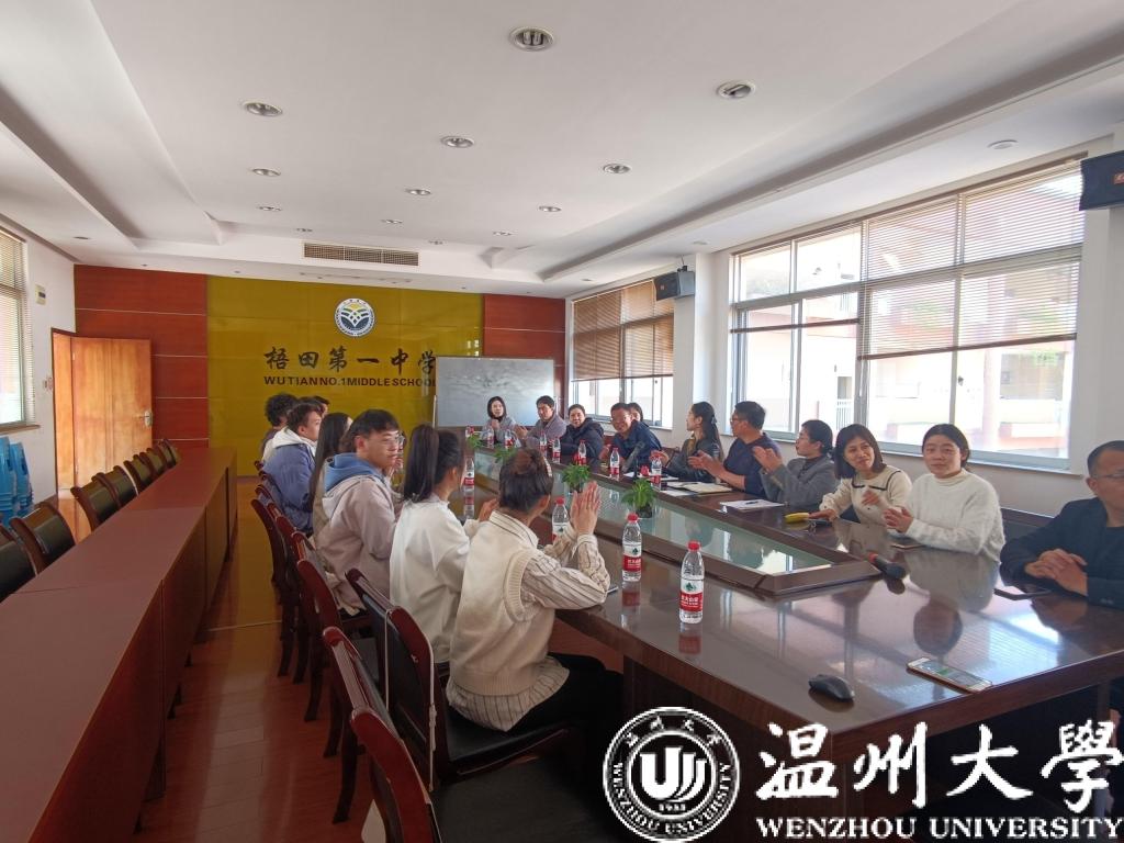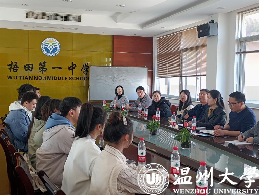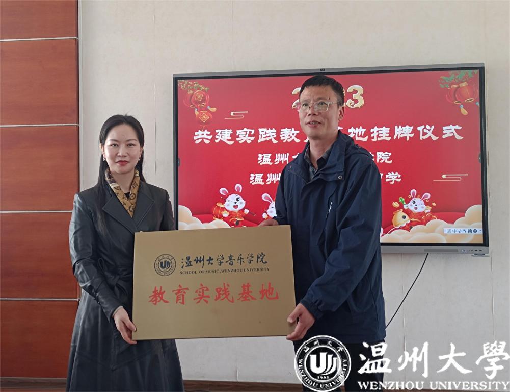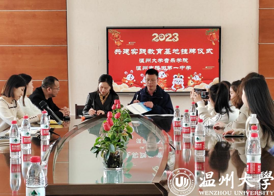 的20级音乐学(师范)班级同学一行前往瓯海区梧田第一中学,共建实践教育基地签约授牌仪式暨师生见面会,会议由瓯海区梧田第一中学副校长郑勇主持。