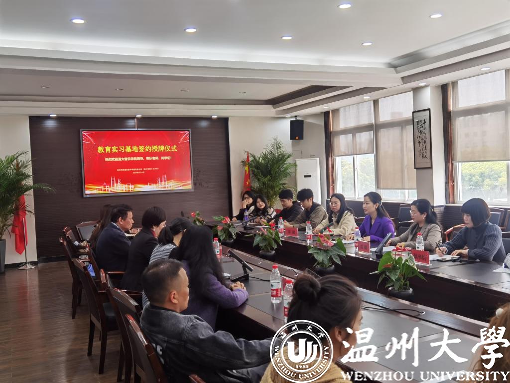 师生的到来表示热烈的欢迎,潘智敏校长致欢迎词潘校长介绍学校的发展史和“润泽教育,向美而行”的教育理念,希望实习学生借助实习契机,为温二实乃至温州的音乐教育添砖加瓦。教务处冯超伟主任介绍了班主任和音乐指导师。