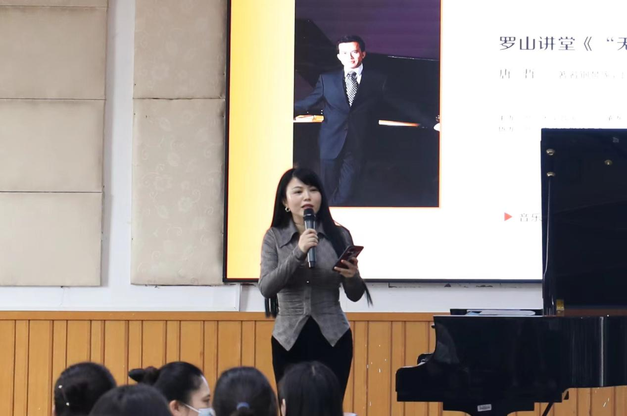 我院钢琴系主任陈思副教授首先向在场师生介绍了唐哲教授在钢琴教学事业上所取得的成就。除了在获得钢琴界金字塔尖的许多成果的同时,唐教授近几年还把一部分精力投入到基层钢琴教师和师范类学生的培养,编写了《高等音乐院校钢琴通用教程》这套教材。值得一提的是,本套教材是由唐哲老师总主编、分册主编陈思老师等业内专家共同凝练集中呈现。