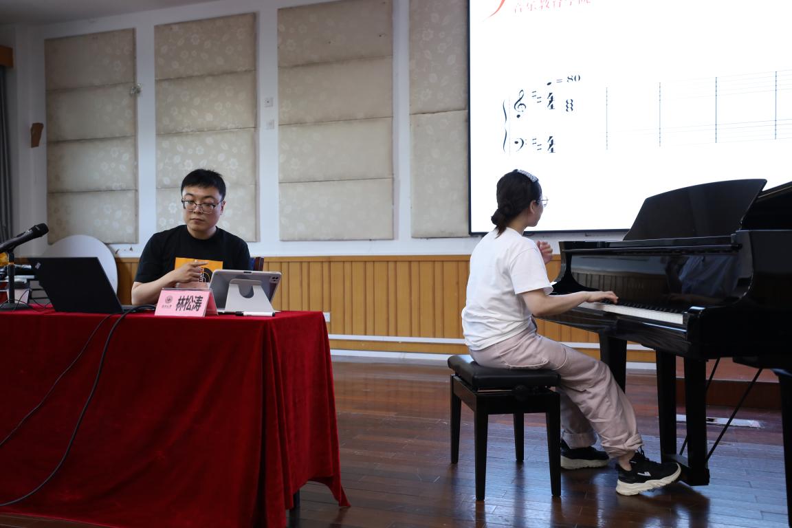 后面为了让我们更加理解副属和弦,林教授给我们空白的五线谱,开启和弦的练耳练习。练耳结束,同学们开始勾唱和弦,并且邀请同学上台弹奏。通过仔细观察刚刚的和弦,同学们对副三和弦有了更深层次的认识。林教授给同学们欣赏了很多乐曲,让我们感受到了运用副三和弦的魅力。