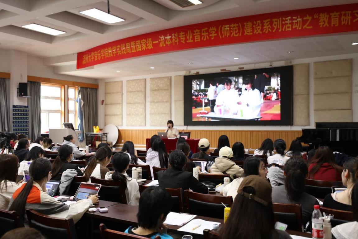 教学实践周暨国家级一流本科专业音乐学(师范)建设系列活动之教育研习活动。讲座的主讲人是王欣欣老师。温州市南浦实验中学高级教师、鹿城区教坛新秀、鹿城区优秀党员、温州市优秀指导师、温州市初中优质课评比一等奖、温州市音乐学科“文本解读与教学设计”一等奖。参与本次讲座的是JJGirls