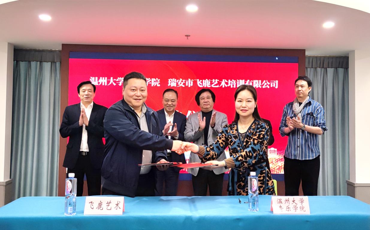 院长邹跃飞、党委书记朱启鑫、副院长蔡军、学工办副主任胡震鹏,继续教育中心副主任许天鸣、教师代表祝海燕一行赴瑞安飞鹿艺术培训有限公司开展访企拓岗活动,签署合作协议,授牌就业实习和劳动教育实践基地。