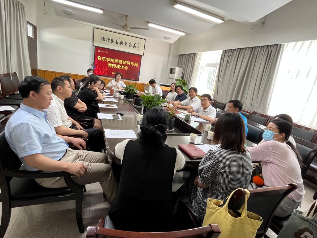 为深入落实立德树人的根本任务,进一步提升教师思想道德素质,加强师德师风建设,5月30日,我院在音乐楼203会议室召开师德师风专题座谈会。校党委副书记庄兴忠出席会议并讲话。会议由学院党委书记朱启鑫主持,学院领导班子、各系室主任、教师代表参加会议。