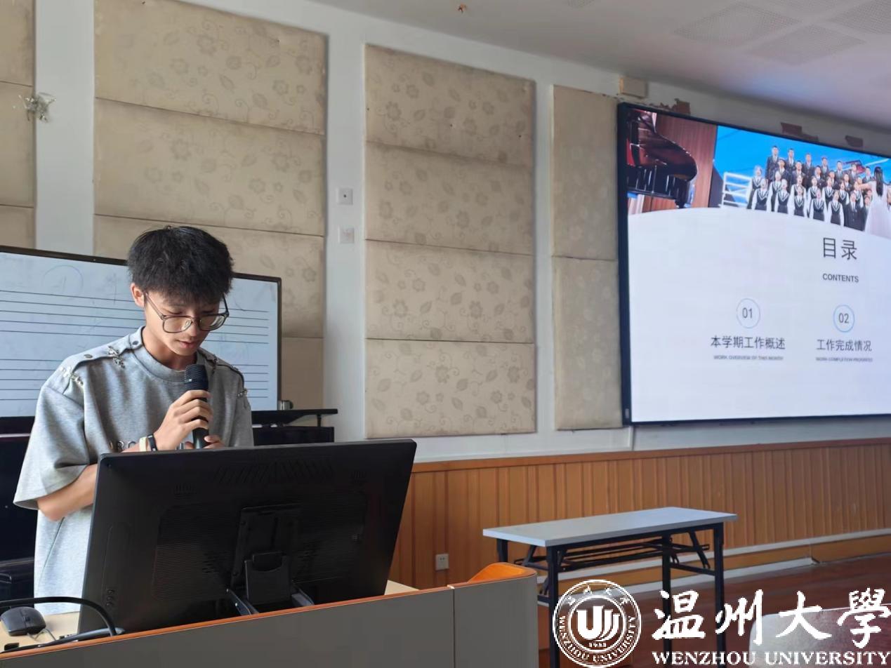 会议伊始,实习负责人李葳老师对本次20级音乐学(师范)学生实习工作进行了总结讲话,肯定实习学生们的优异表现,并对学生们的将来寄予了厚望。随后,20音教班级周景宜同学作为温州市第二实验中学实习小组组长,谢多加同学作为温州市第二外国语学校实习小组组长,张树元同学作为温州市第十二中学学校实习小组组长,李文昊同学作为温州市第二中学(滨江校区)实习小组组长等,结合了音频、视频和PPT等,分别从实习学校的简介、教师团队、教学活动、班主任日常、个人感悟、工作内容、音乐课堂、实习收获等方面进行了精彩发言,他们不仅为大家展现了此次实习的成果,也是一次深刻全面的实习总结。
