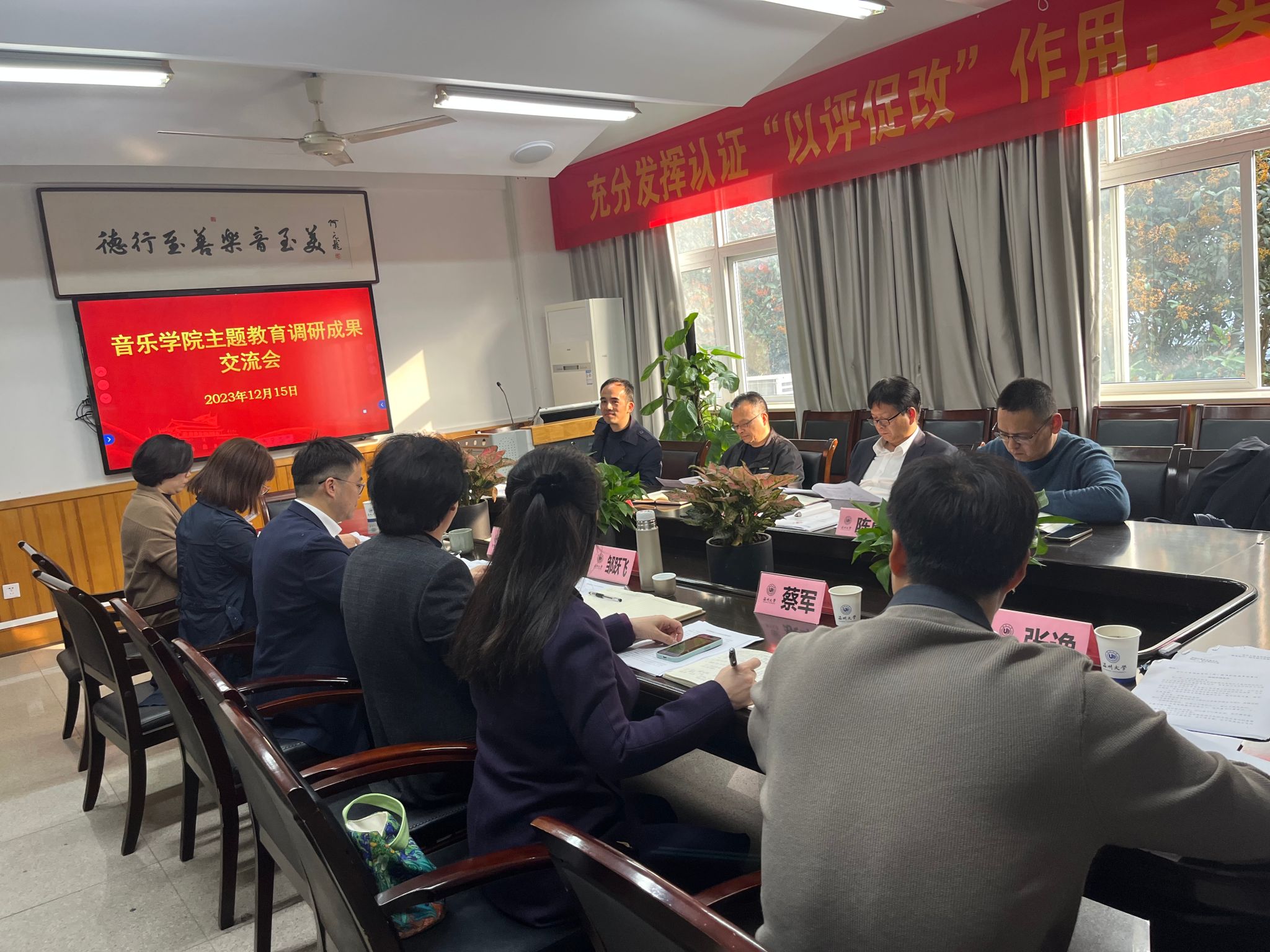 在音乐楼203会议室召开学院领导班子主题教育调研成果交流会。校党委副书记庄兴忠、人文社科处副处长陈勇、校主题教育第三督导组钟锦川到会指导,学院全体领导班子成员参加会议,会议由学院党委书记朱启鑫主持。