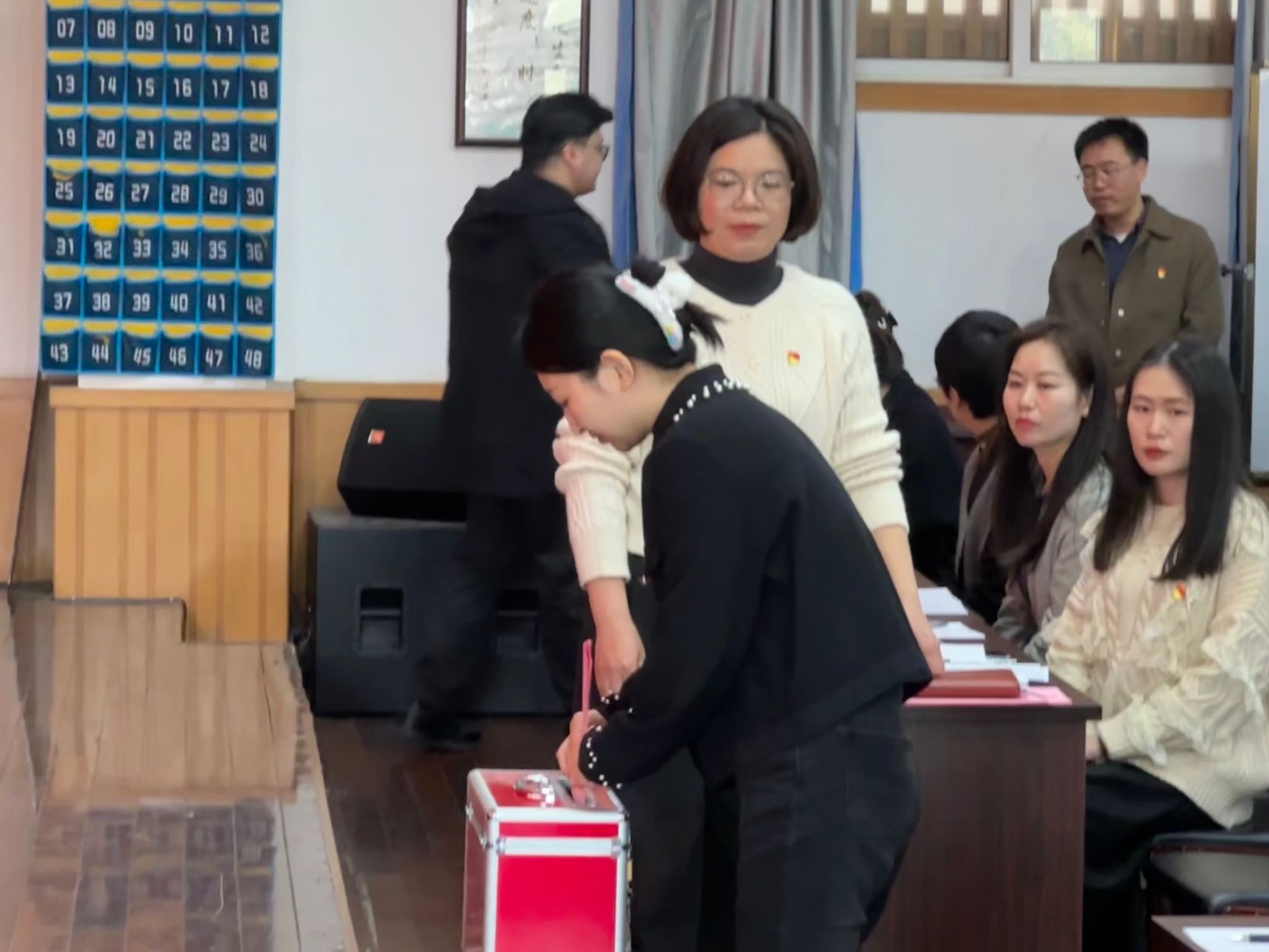 朱启鑫向大会介绍学院出席校第三次党代会候选人产生过程和基本情况。在监票人监督下,全体正式党员按照指定顺序井然有序进行了无记名投票,通过差额选举的方式进行民主选举。投票环节结束后,在监票人的监督下,计票人进行计票。最终,大会选举产生3名同志为音乐学院党委出席校第三次党员代表大会的代表,由总监票人在大会上宣读中国共产党JJGirls