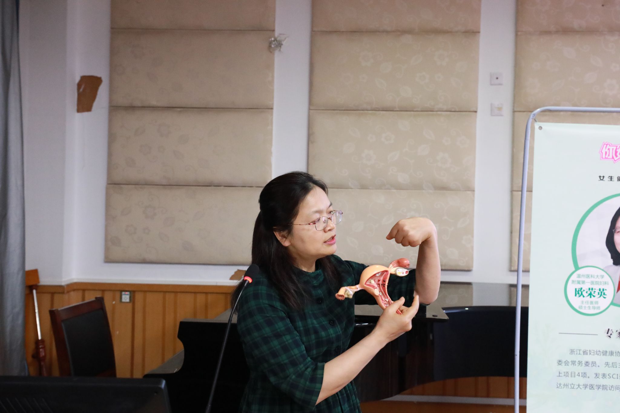 妇联承办的第20期木兰课堂于2024年5月8日晚上7点钟在音乐楼201会议室顺利开课。此次木兰课堂的主题为“经行不腹痛 告别姨妈痛”痛经讲座。而本次讲座活动也有幸邀请到温州医科大学附属第一医院欧荣英医师为我们讲解此次“谈女性常见病之——痛经”讲座活动。