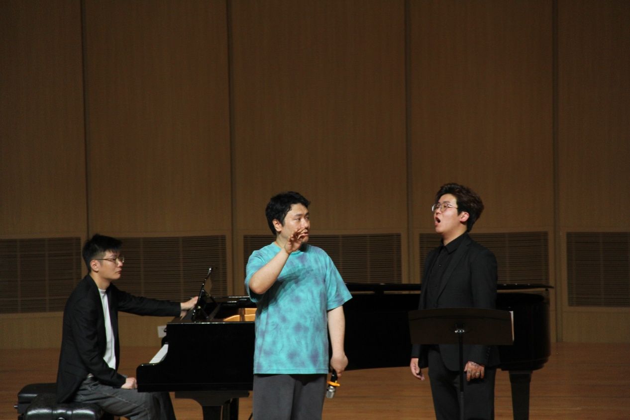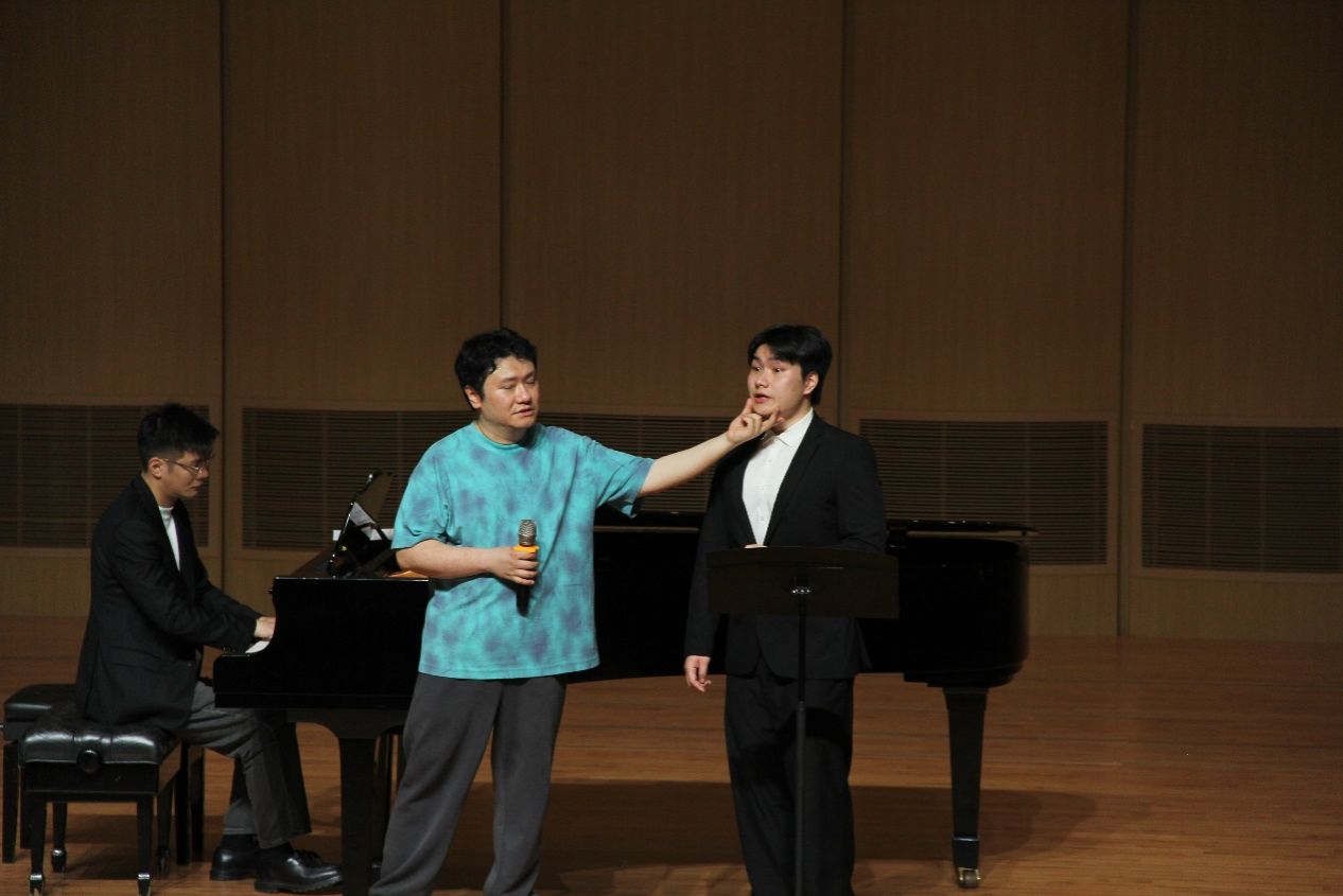 的学生的声乐演唱作为样本,针对同学们各自的问题进行针对性的解决与练习指导。刘曙光老师教学严谨,语言精练,通俗易懂,无论是普契尼、罗西尼的歌剧选段还是中国的民族歌曲,刘曙光老师都能立刻找到学生演唱的问题所在、歌曲精髓所在,因材施教且获得显著效果,让学生在短时间内歌唱水平有非常显著的提升!