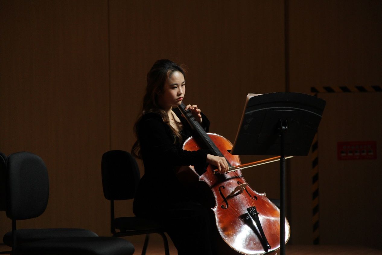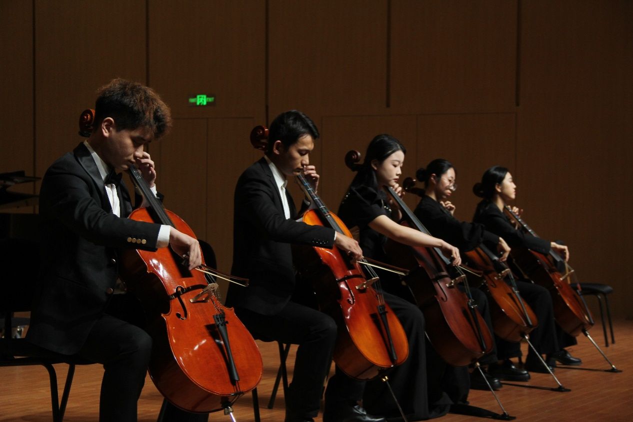 音乐会伊始,由全体大提琴选修课学生带来《闪烁的小星星变奏曲》惊艳全场。随后,师生们依次登台,献上了一系列中外经典大提琴曲目。包括《小步舞曲》、《回旋曲》、《送别》等,每一首曲子都充满了同学们的深情演绎与对音乐的独特理解,展现大提琴的深情与华丽,带给观众们震撼与享受。