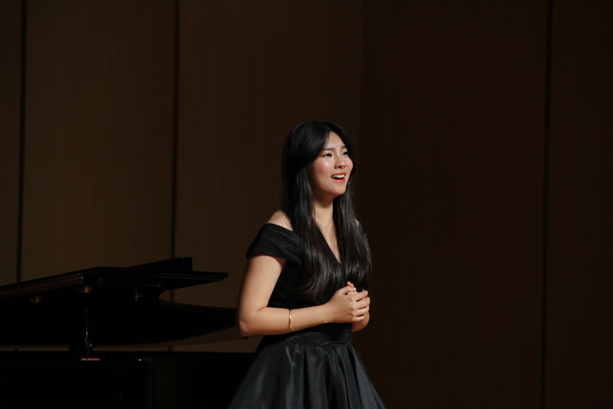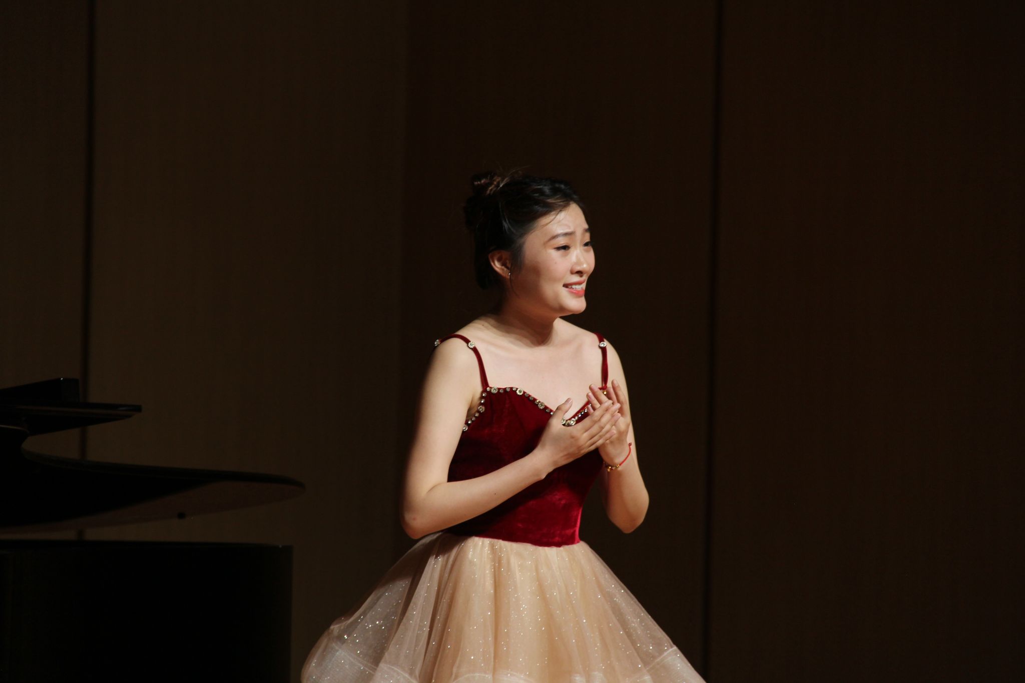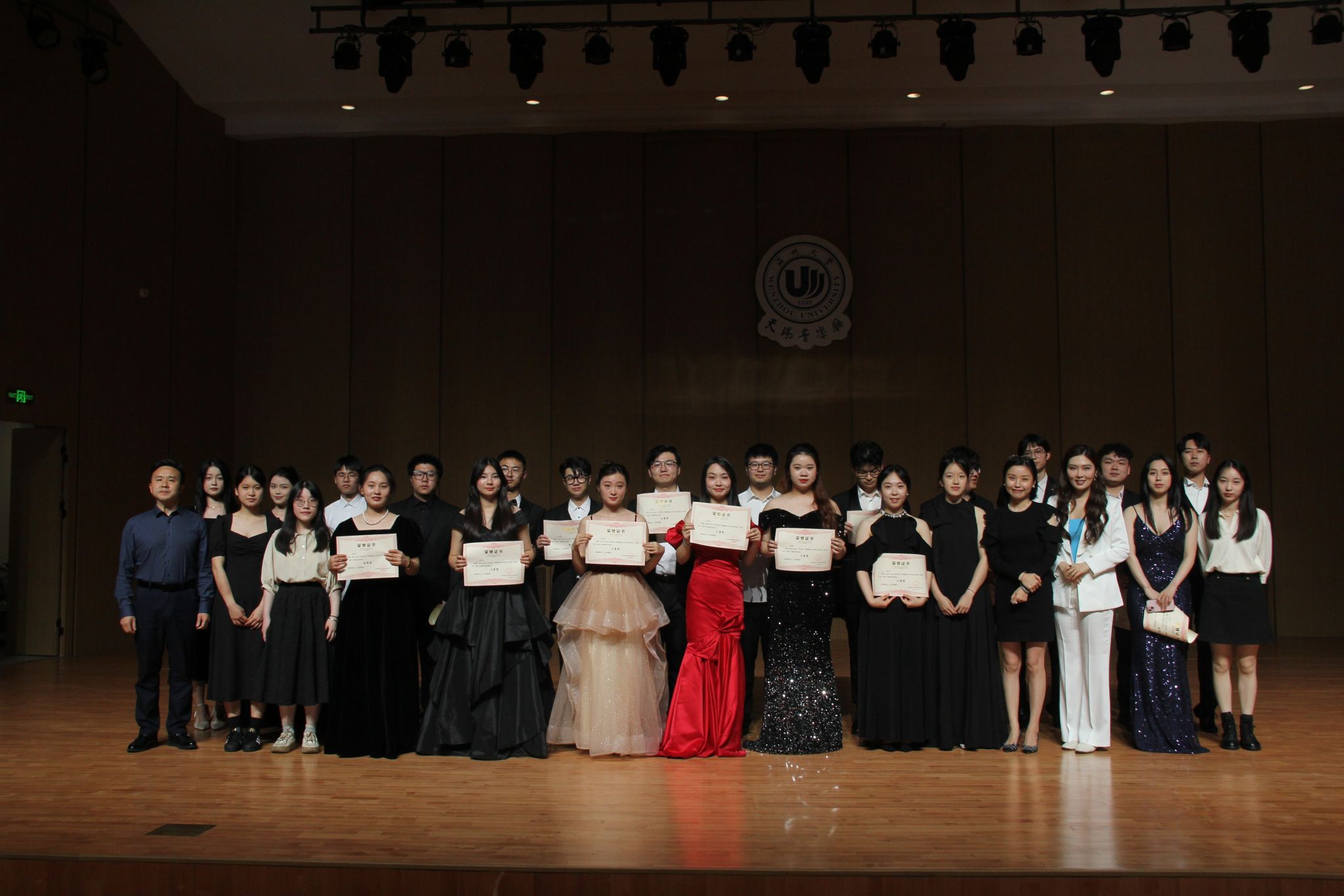 在这之后本科生与专升本组选手进行演唱。陈雨同学带来的《年轻姑娘应该懂得》歌声充满力量展现了年轻姑娘的坚定和勇敢。何润同学的《想亲娘》深情款款,他以真挚的情感和细腻的嗓音,将歌曲中的思念和牵挂表达得深入人心。康奕琳同学演唱的《念奴娇·赤壁怀古》让在场的观众无不为之动容。古小玉同学带来的《我去向何方》以其深情的演绎,展现了歌曲中的迷茫和追求。李咏静同学演唱的《幽兰操》以悠扬婉转的曲调和深情的演唱,展现了幽兰的高雅和坚韧。王聪慧同学带来的《锦瑟》将歌曲中的哀怨和无奈演绎得入木三分。雷森伟同学演唱的《故乡》则以其豪放的嗓音和深情的演绎,将歌曲中的思乡之情表达得淋漓尽致。金昌民同学演唱的《春花秋月何时了》歌声如同春水般柔和,又似秋月般明亮,表达了人生的短暂和无常。陈嘉慧同学演唱的《不答应也得答应》以其清澈透亮的嗓音,将歌曲中的情感表达得细腻而真挚,赢得了观众们的阵阵掌声。最后郭骏同学深情的演唱和精湛的技艺,成功演绎了《美妙的时刻即将来临》这首曲目。至此所有选手演唱完毕。