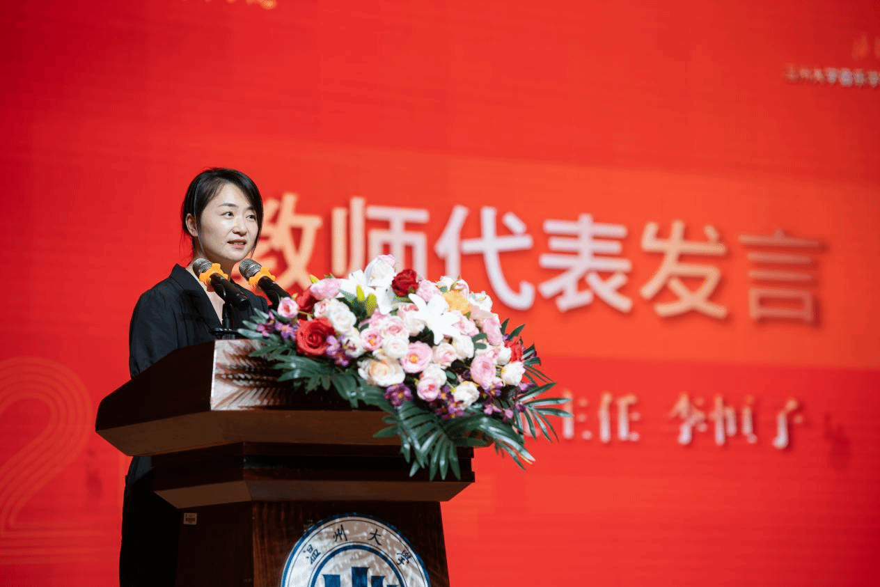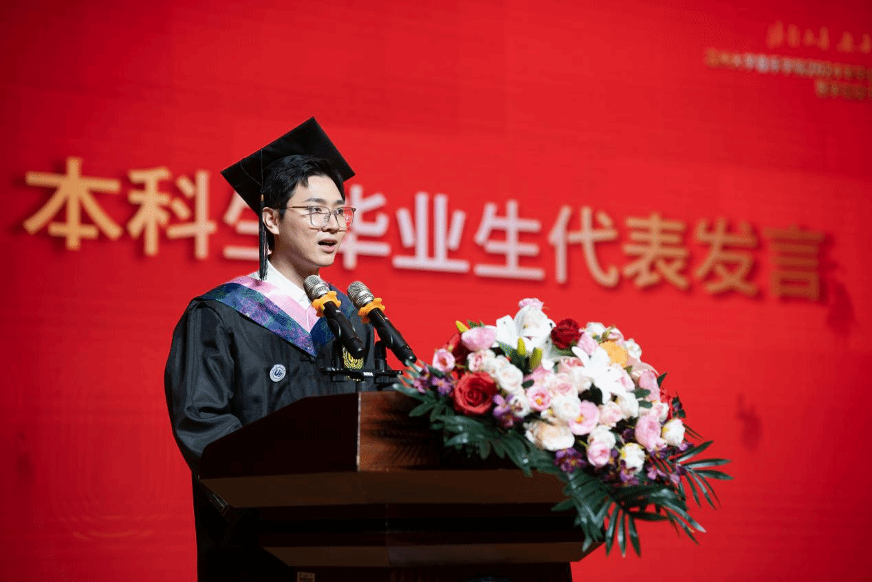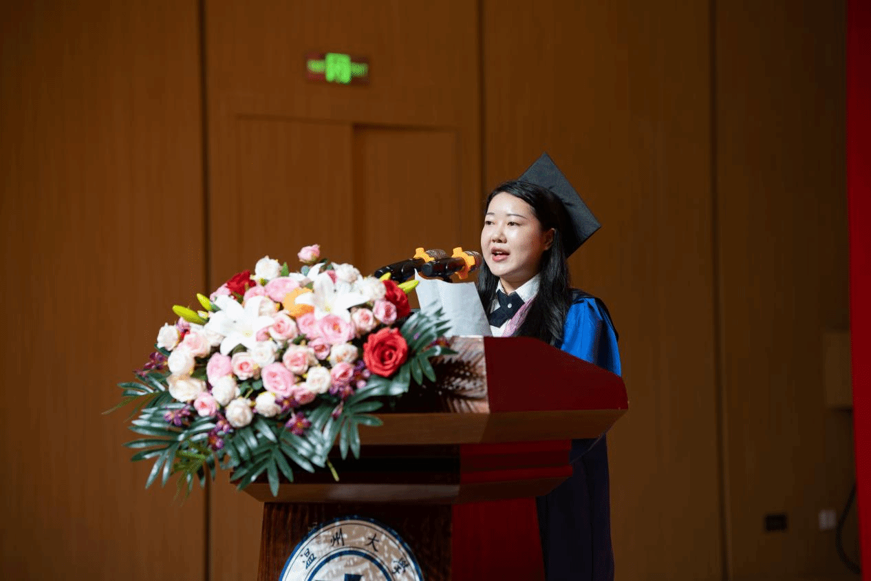 21音研龙好萍作为研究生代表发言,她结合自身西部计划志愿者的经历希望同学们要把梦想定在远方,要将青春奉献在祖国大地上。今年她也考取新疆地区公务员,将继续回到她曾经奋战过的西部,继续贡献青春力量。20音教1吴元邦作为本科生代表发言。他回忆起曾在泰顺县东溪乡实践的点点滴滴,感谢每一位老师对他成长中的关注和指导。未来定在工作岗位中回报母校。