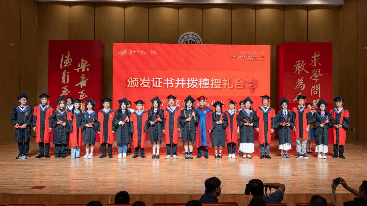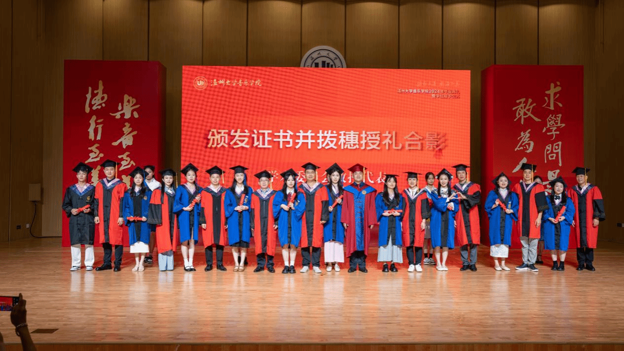 副院长张潇潇宣读了学位授予决定。随后举行隆重学位授予仪式,在庄严而温馨的氛围中,院长和学术委员会教授们亲手为学生们拨正流苏,象征着他们正式迈入人生的新阶段。毕业生们激动地接过证书,与导师们合影留念,定格下这珍贵的时刻。
