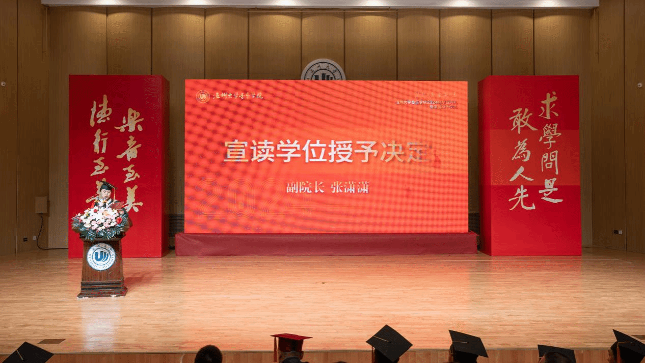 2024年毕业典礼暨学位授予仪式在天瑞音乐厅隆重举行。全体院领导、学术委员会教授、各系室主任、毕业班班主任、全体辅导员、全体毕业生、毕业生家长代表等参加典礼。院党委副书记林海红主持。