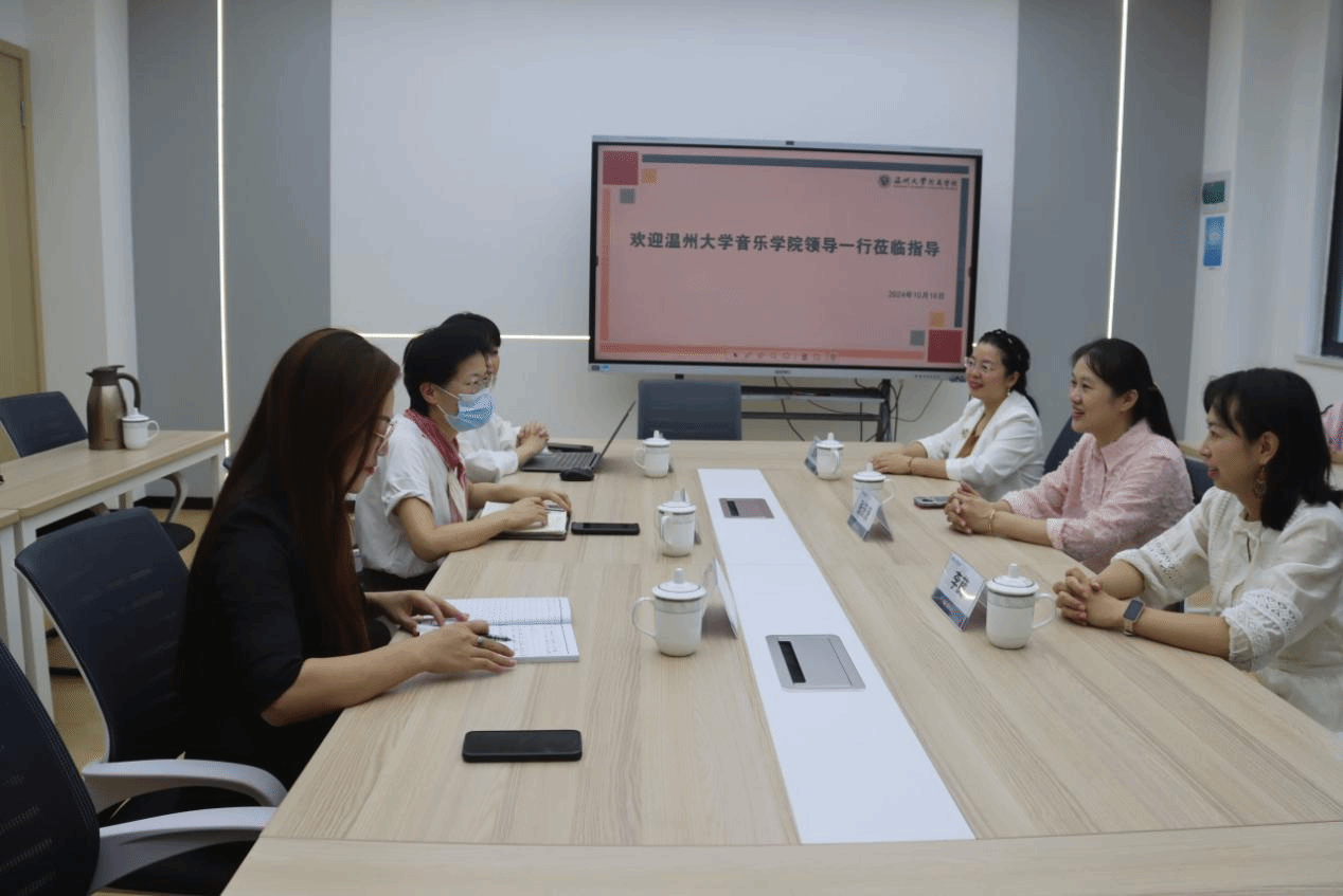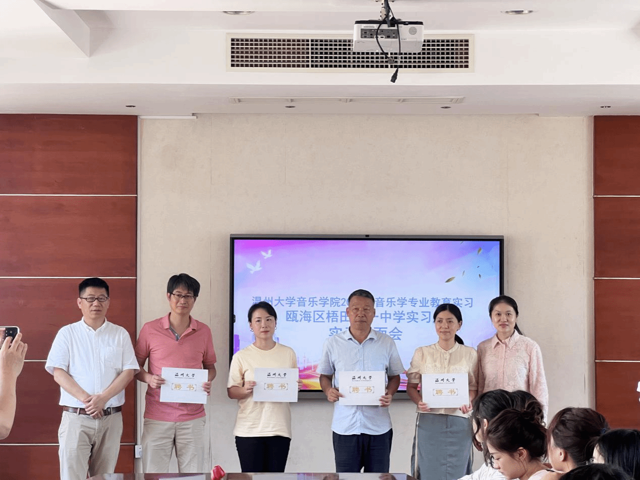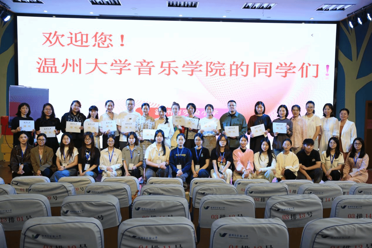 附属学校(温州榕园学校)举行实习见面会。屈小武校长对来访领导、老师以及8位音乐学(师范)专业同学的到来表示热烈欢迎,她表达了学校对艺术教育的重视,鼓励实习老师把握实习机遇,为成为明日教师、未来良师做好准备。