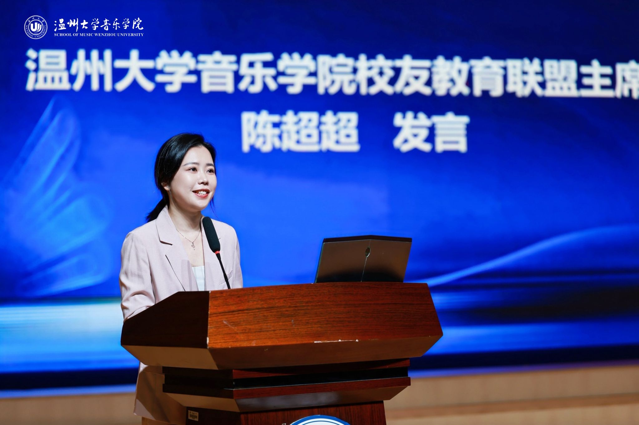 校友教育联盟主席陈超超在发言中表示,将充分发挥联盟的桥梁和纽带作用,凝聚校友力量,加强校友间的深度协作。通过三年计划,带动校友集群式发展,将联盟打造成为科学化、精准化、系统化的教联体,推动温州音乐教育的和谐大发展。