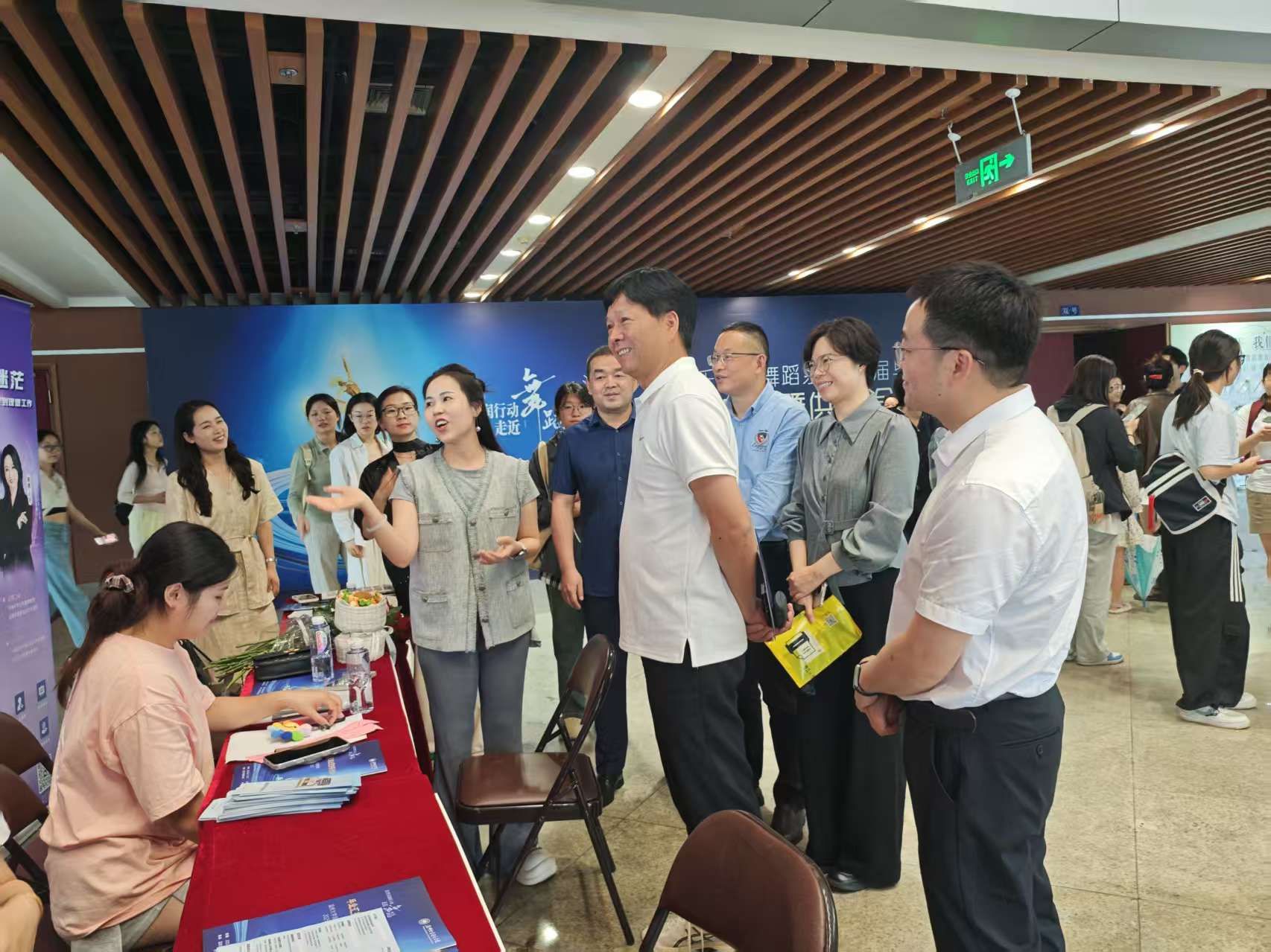 党委副书记庄兴忠走到展位前饶有兴致的和用人单位交谈,他亲切询问用人单位的用人需求,向其介绍学校在舞蹈专业人才培养方面的特色与优势,得知一些用人单位的负责人本身就是学校校友时,庄兴忠书记表:“欢迎回到母校,希望你们将事业成功的方法传授给为学弟学妹们”。