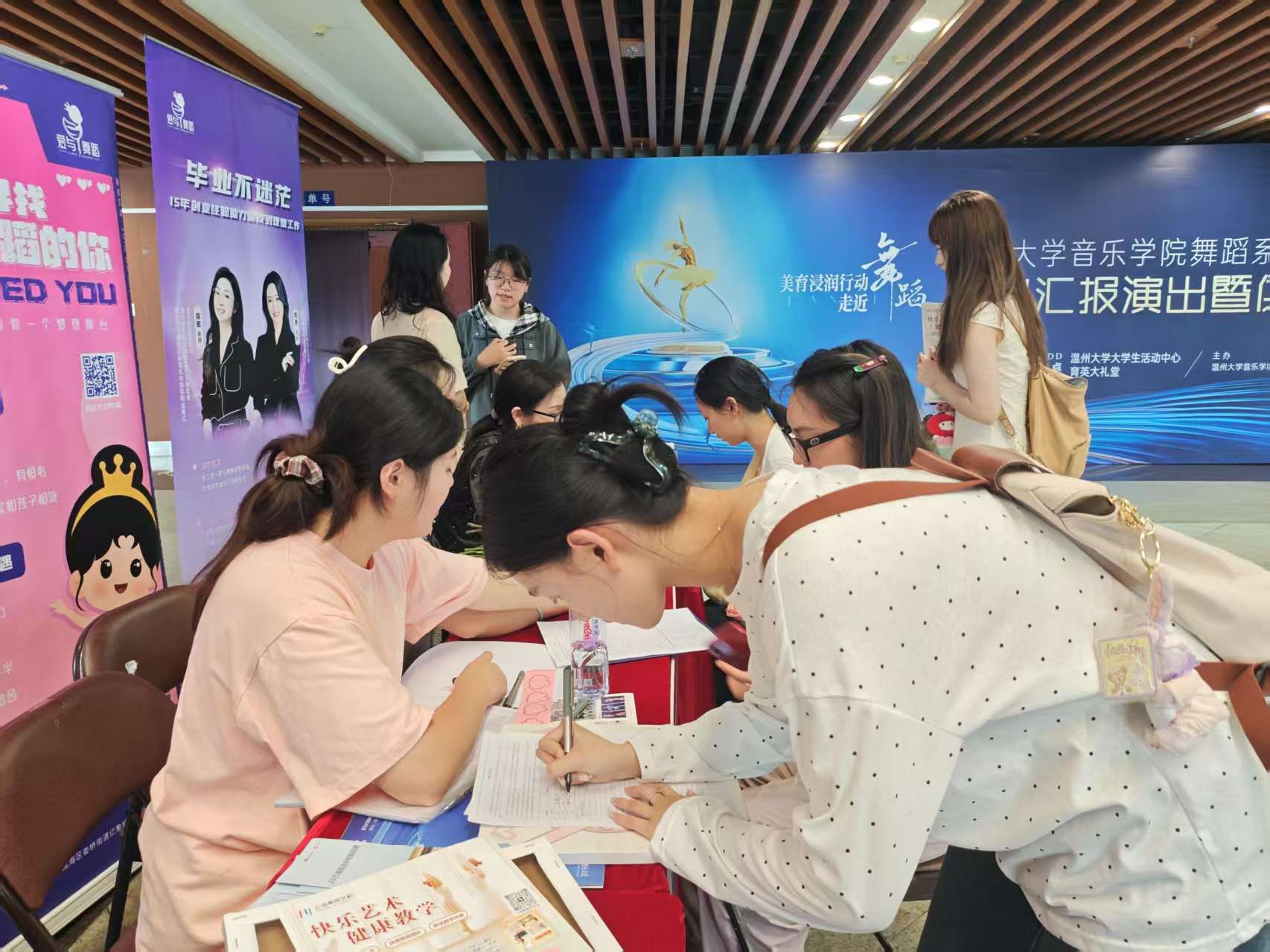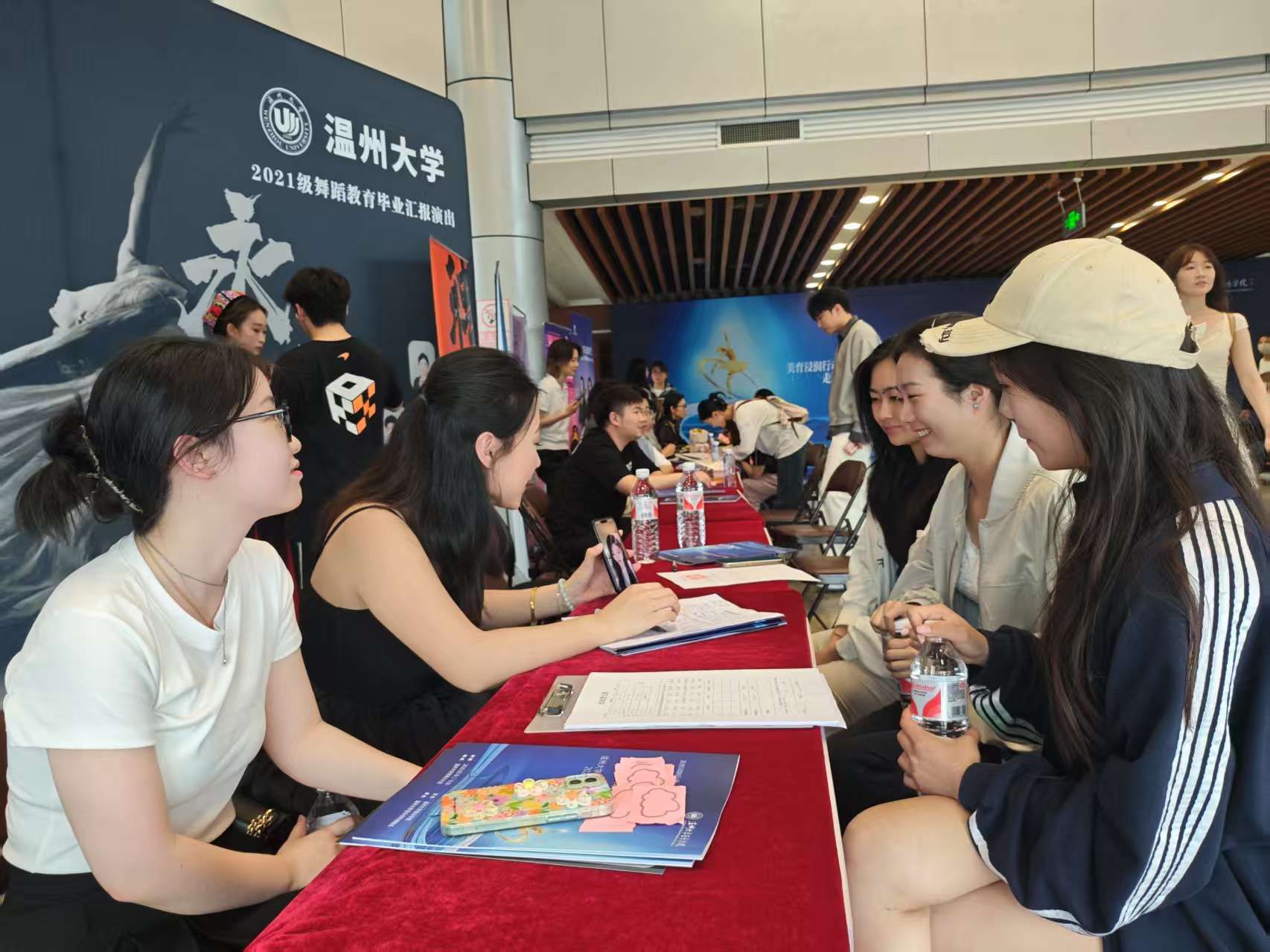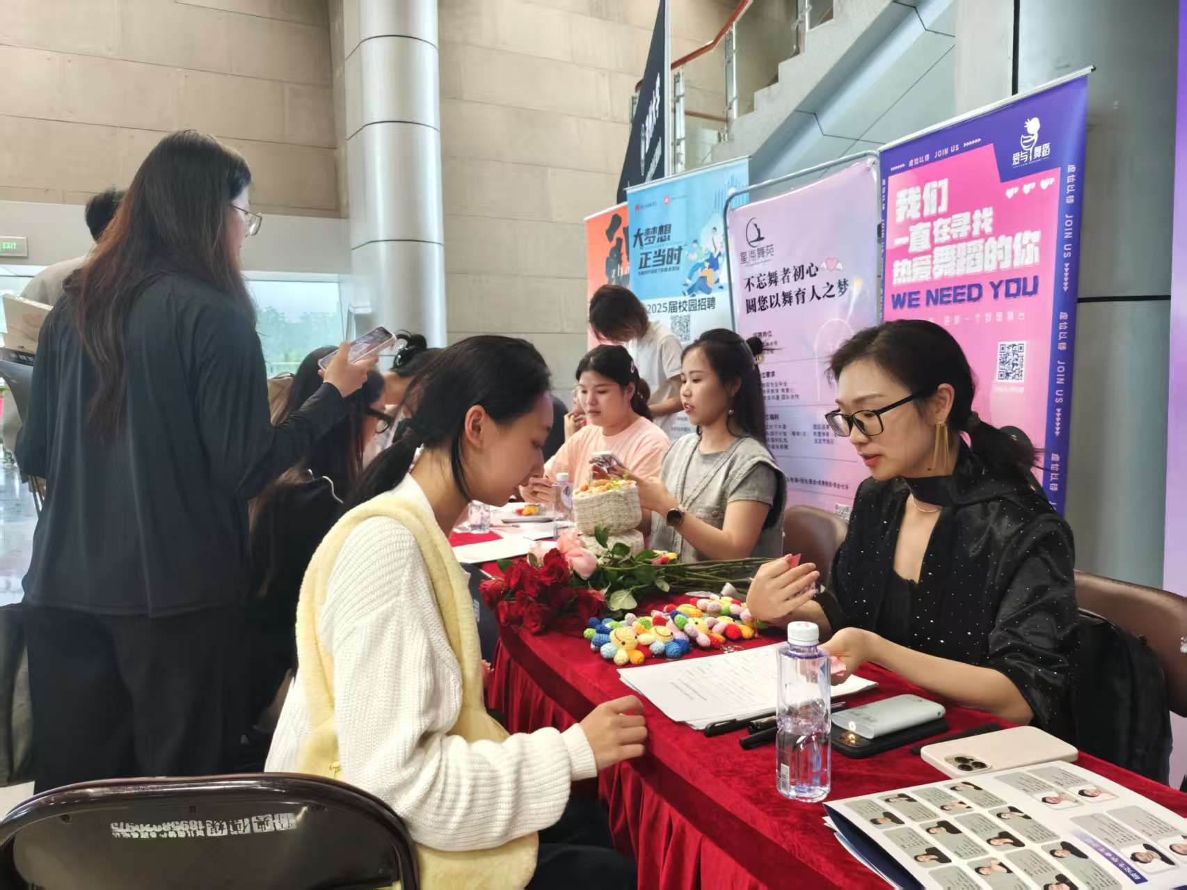 演出过后,2025年舞蹈专业毕业生供需洽谈会在育英大礼堂门厅进行,此次洽谈会吸引12家来自温州本土优质用人单位参会,共提供超过200余个就业岗位,其中包括舞蹈教培机构、演艺公司等传统用人单位,还不乏短视频网红培育、旅游文化产业等新兴行业企业。JJGirls