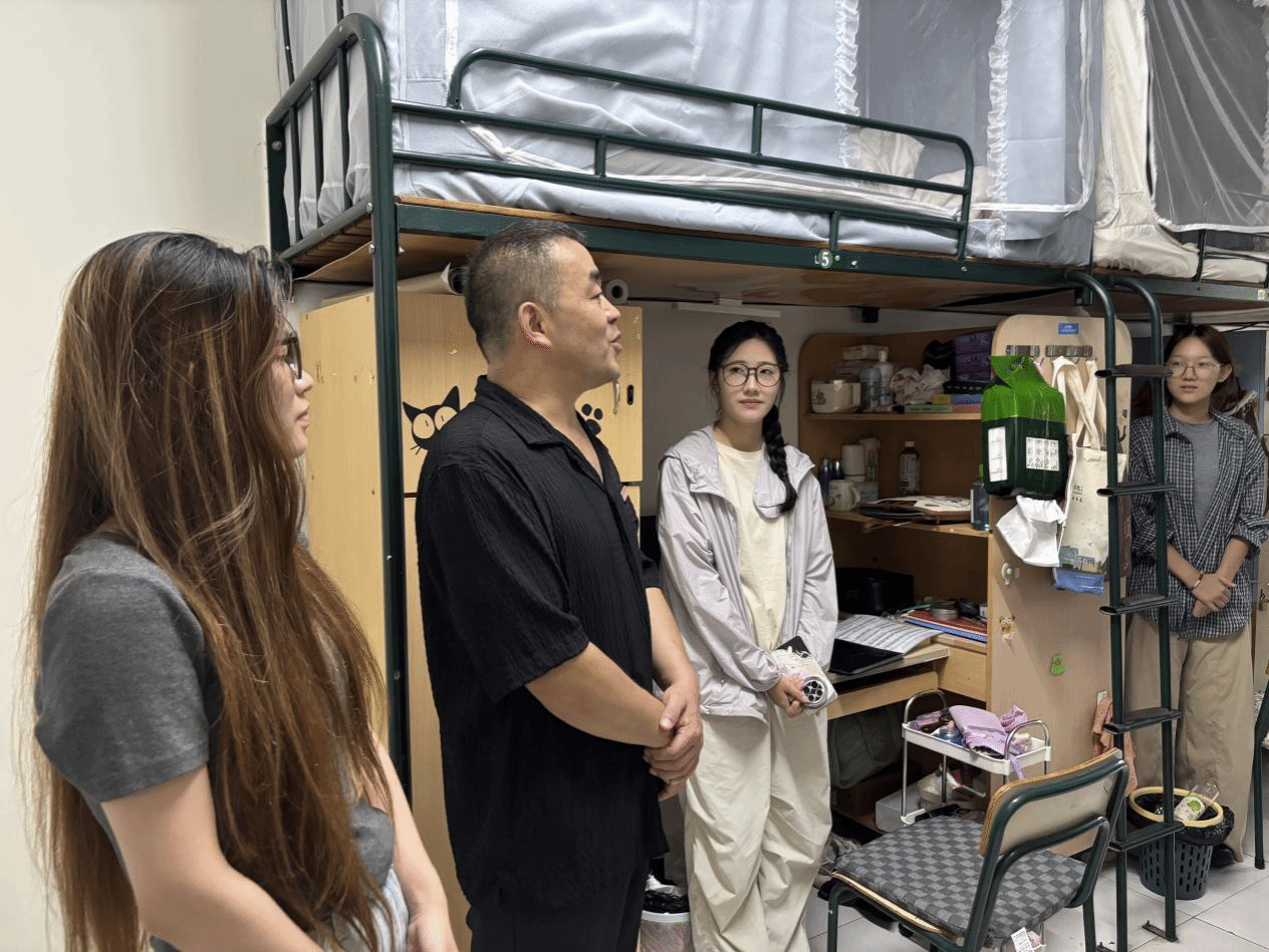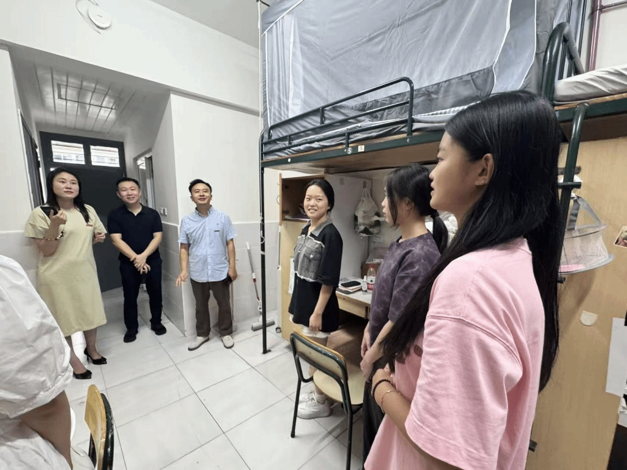 领导班子、班主任与辅导员共同走进学生宿舍,开展新学年寝室走访活动,为同学们送上诚挚的问候与新学期的祝福。