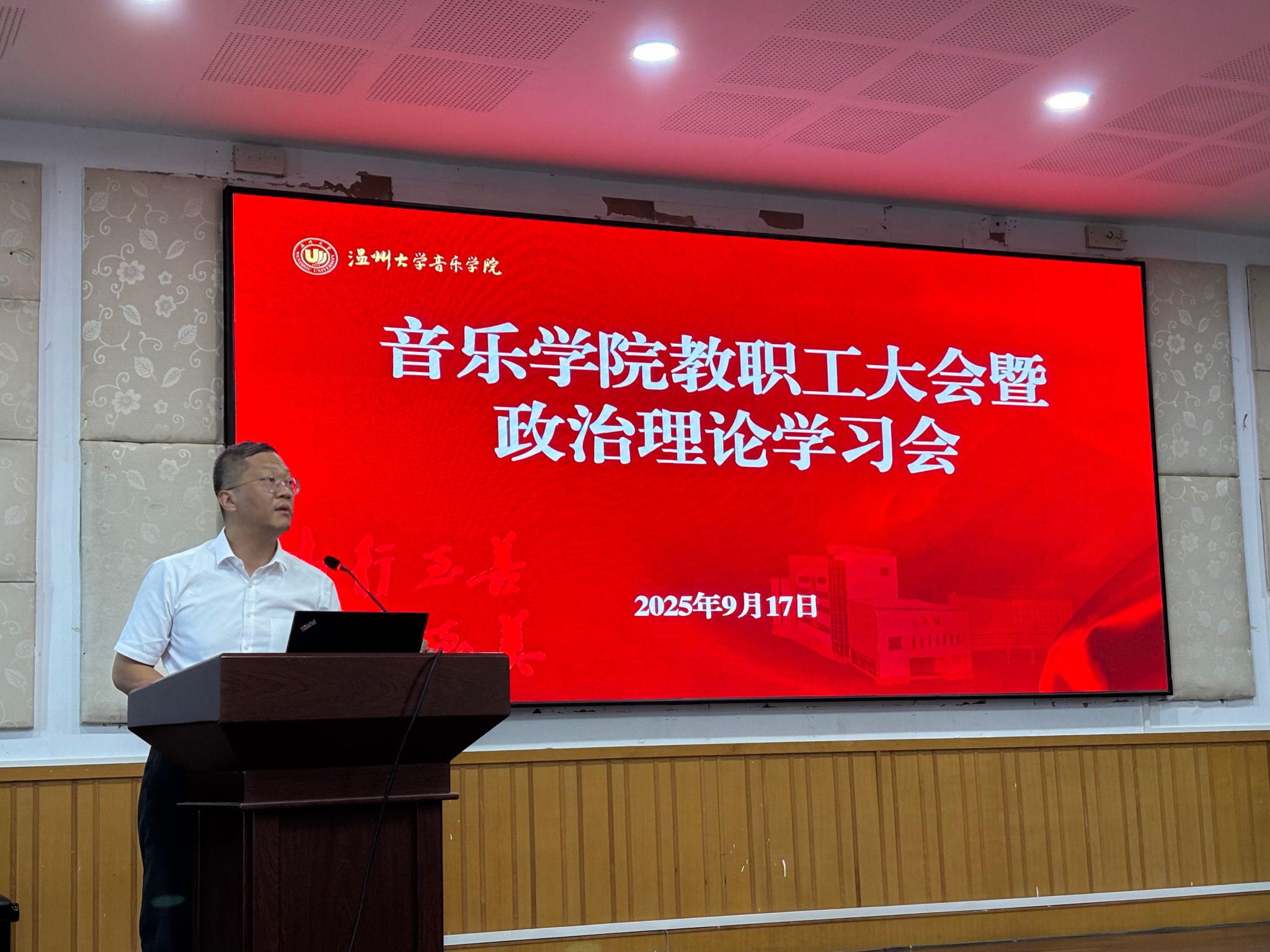 在学院201会议室召开新学期全体教职工大会暨政治理论学习会。