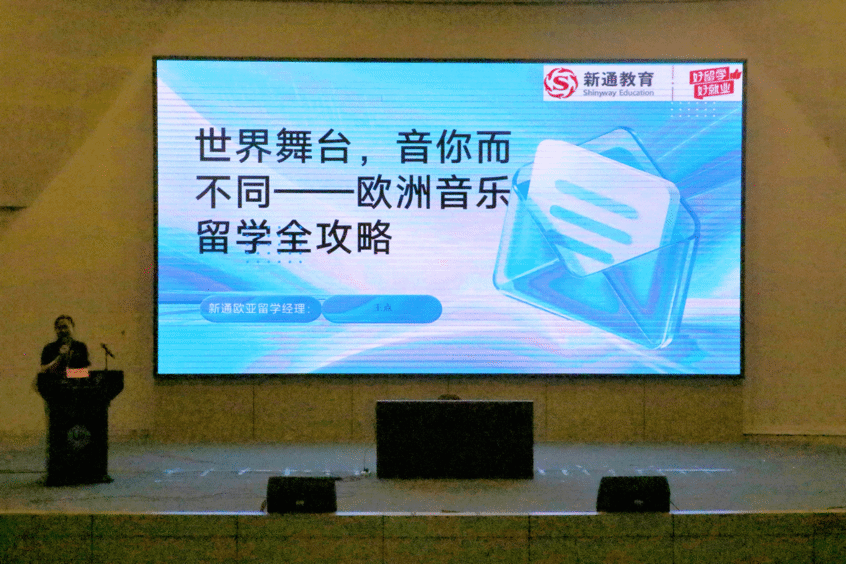 随后的出国留学专题讲座上,新通留学欧洲部高级留学规划经理王点结合行业数据与真实案例,深入剖析留学与国内升学的差异化优势。她指出,相较于国内艺术类研究生升学的激烈竞争,出国留学不仅申请门槛更适配艺术生特点,备考压力也显著降低;而欧洲作为艺术教育高地,拥有柏林艺术大学、巴黎国立高等音乐舞蹈学院等众多顶尖院校,其深厚的艺术底蕴、国际化的教学理念及丰富的舞台实践资源,能为音乐、舞蹈专业学生提供更高水平的成长平台。王点强调,留学并非单纯的学历提升,更是一次视野拓展与能力赋能的过程 —— 海外求学经历能帮助学生接触多元艺术风格,提升跨文化交流能力,这些优势将成为未来职业发展的重要竞争力,助力学子在艺术表演、教育、文创等领域开辟更广阔的空间。