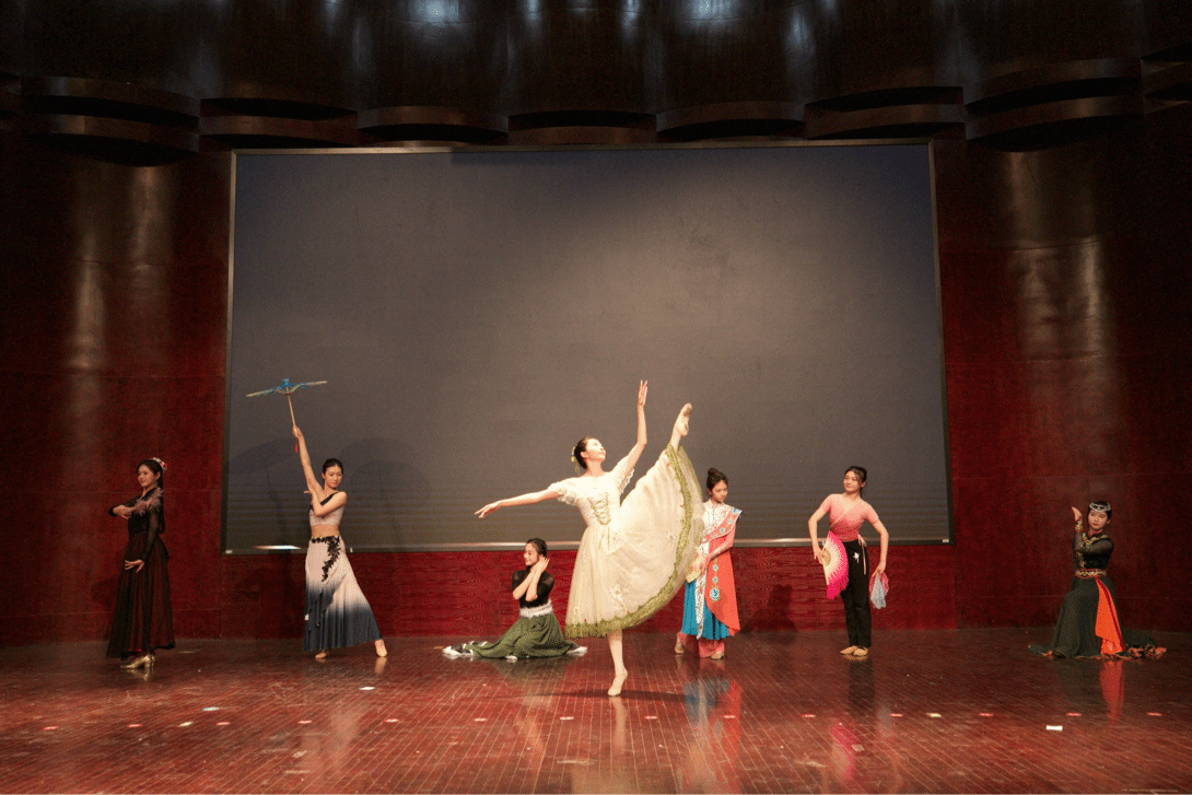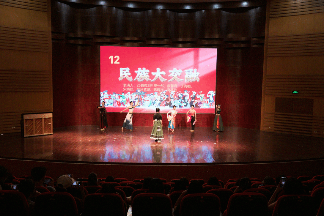 25舞教2班的同学们联合带来舞蹈《民族大交融》,舞者们身着绚丽的民族服饰,每一段舞蹈都像在诉说不同民族的故事——藏族的豪迈、傣族的灵动、维吾尔族的热情在舞步中交融碰撞,展现了文化交融的独特魅力。