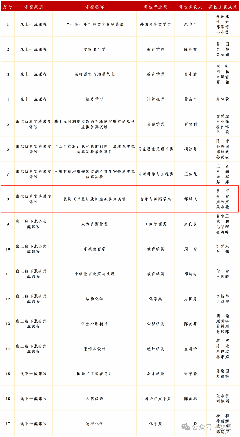 近日,教育部正式公示第三批国家一流本科课程认定名单,我院《歌剧<五星红旗>虚拟仿真实验》成功入选虚拟仿真实验教学课程,这是我院本科课程建设的突破性成果,标志着课程质量与教学创新水平迈上新台阶。